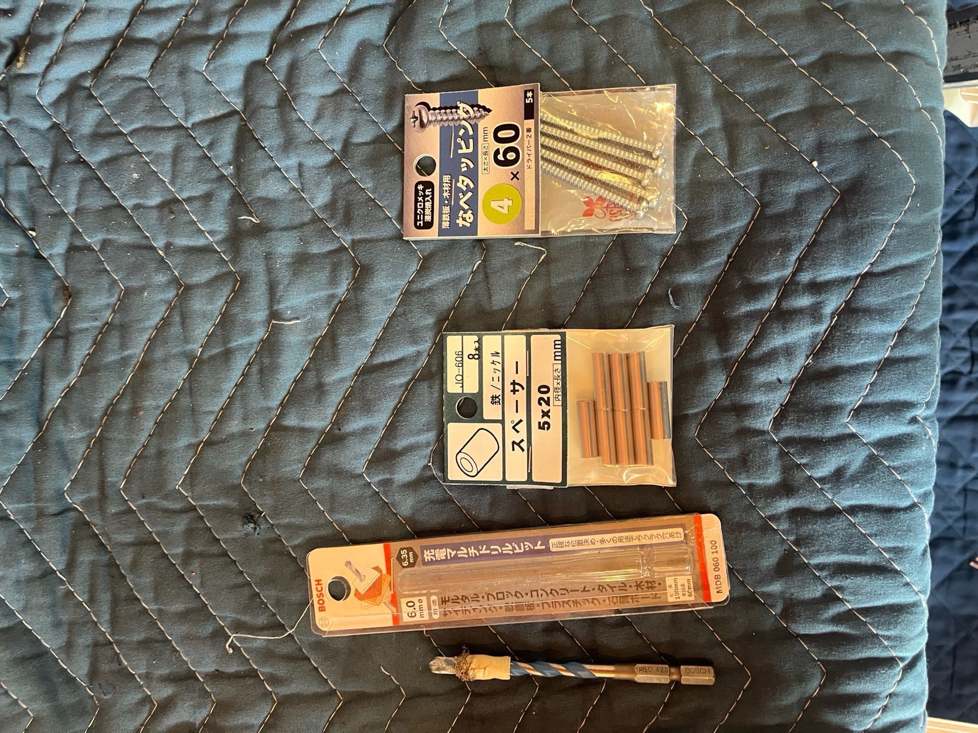 下地まてま下穴を開けてスペーサを差し込み背板を取り付ける壁の凸凹をを均一化