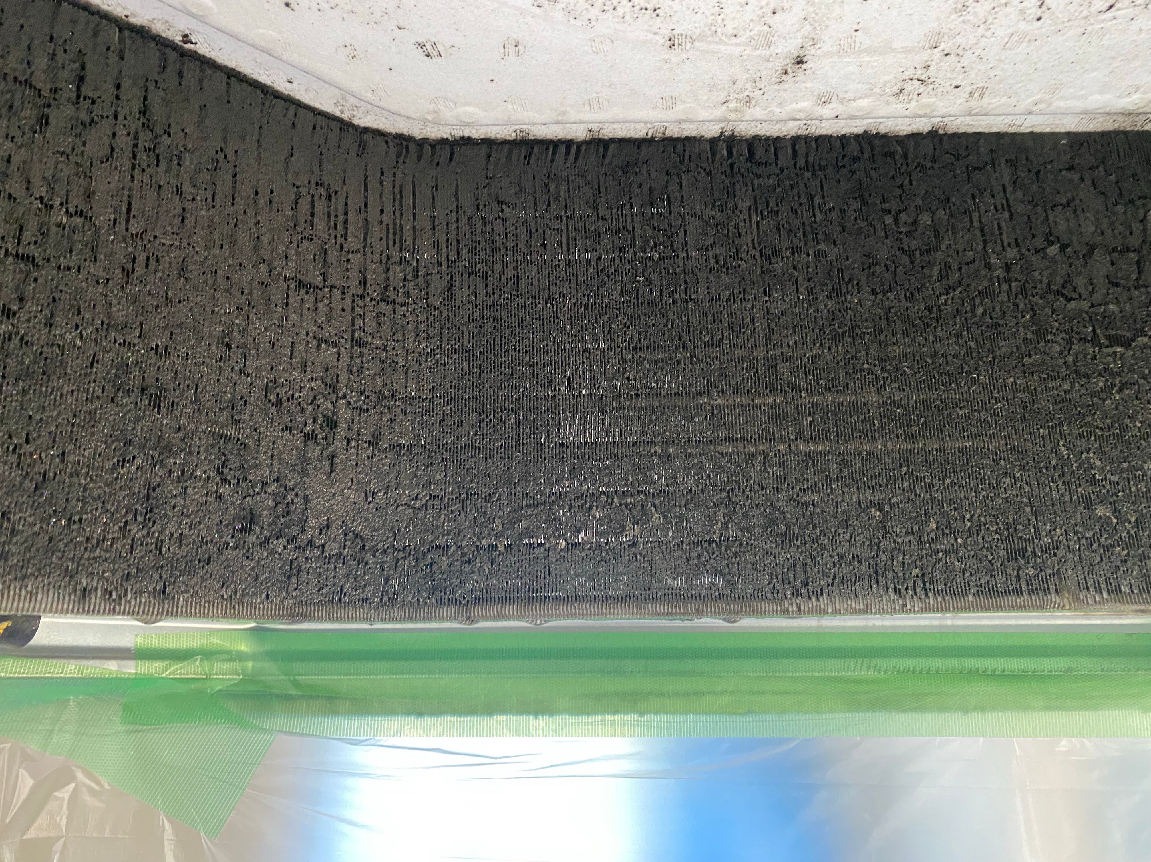今回は三菱の天吊4方向のエアコンクリーニング依頼でした。十四年間一度もクリーニングしていないということで1番思ったことは良く今までドレンポンプ詰まりしなかったなぁという印象でした。開けてみると予想通り埃とカビでフィンはほぼ目視出来ません。これでは吸気がうまく行えずエアコン自体も苦しく、風量も冷えも悪いです。ドレンも真っ黒。ポンプの中は以外と綺麗でしたが導通確認して組み直し。各パーツ洗浄し無事に完了。依頼主様の所は飲食店ではなかったので油は絡んでおりませゆでしたのでこれ位で済んだのだと思います。業務用は家庭用と違いドレン詰まりを起こすと強制停止しますので夏前に一度清掃をお勧めします。夏に停止すると営業損失の方が大きくなります。こまめな点検と清掃でリスク回避しましょう。