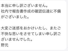 この度はせっかく弊社を選んでいただいたにも関わらず、弊社の不備でご不便をおかけして誠に申し訳ございませんでした。 今まで報告書については担当者のみで管理しておりましたが、社内管理業務を見直し、今後はダブルチェック体制とし再発防止に努めます。 改めて、この度は弊社のインスペクションをご利用いただき、誠にありがとうございました。