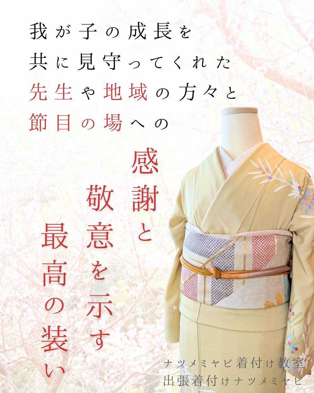 ◆楽と綺麗が叶うすっきり着付けーお子様、授乳中、妊婦さん、高齢の方もご安心を♡ご家族の大切な日に技術と心で寄り添います。