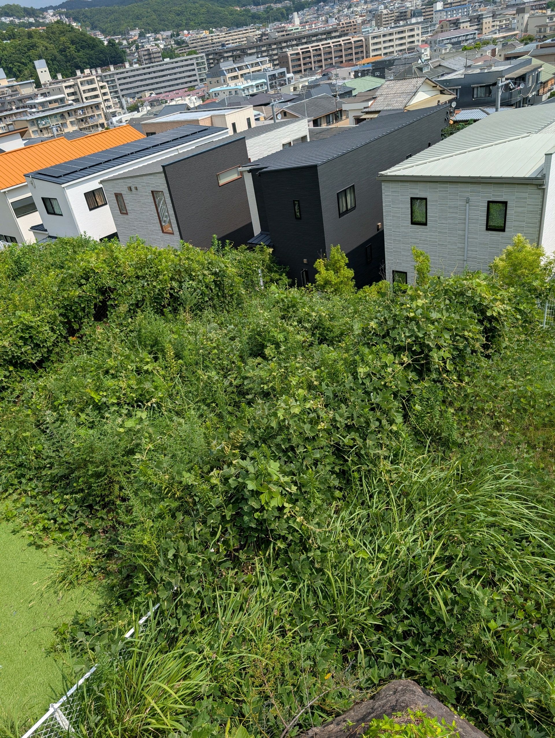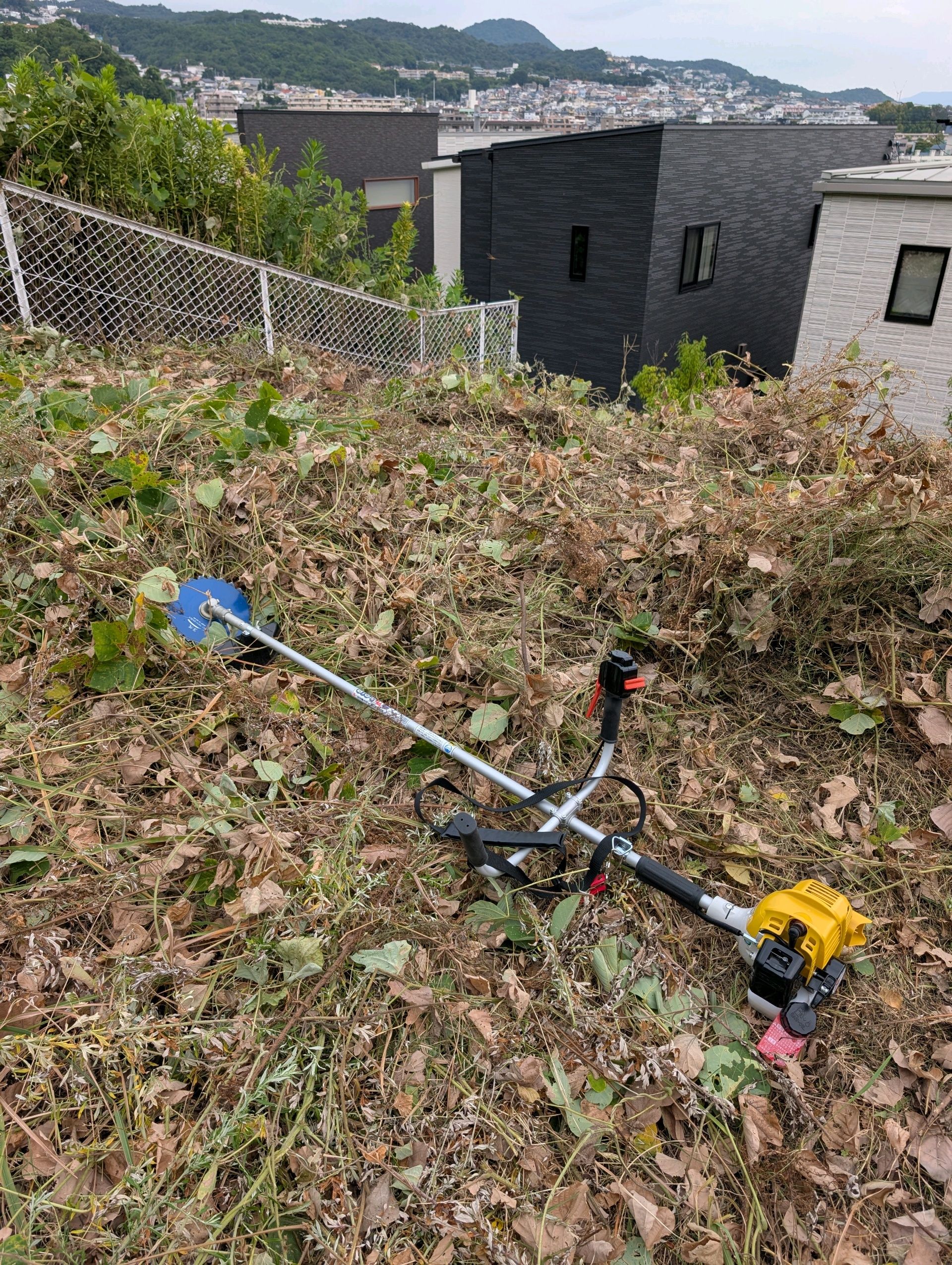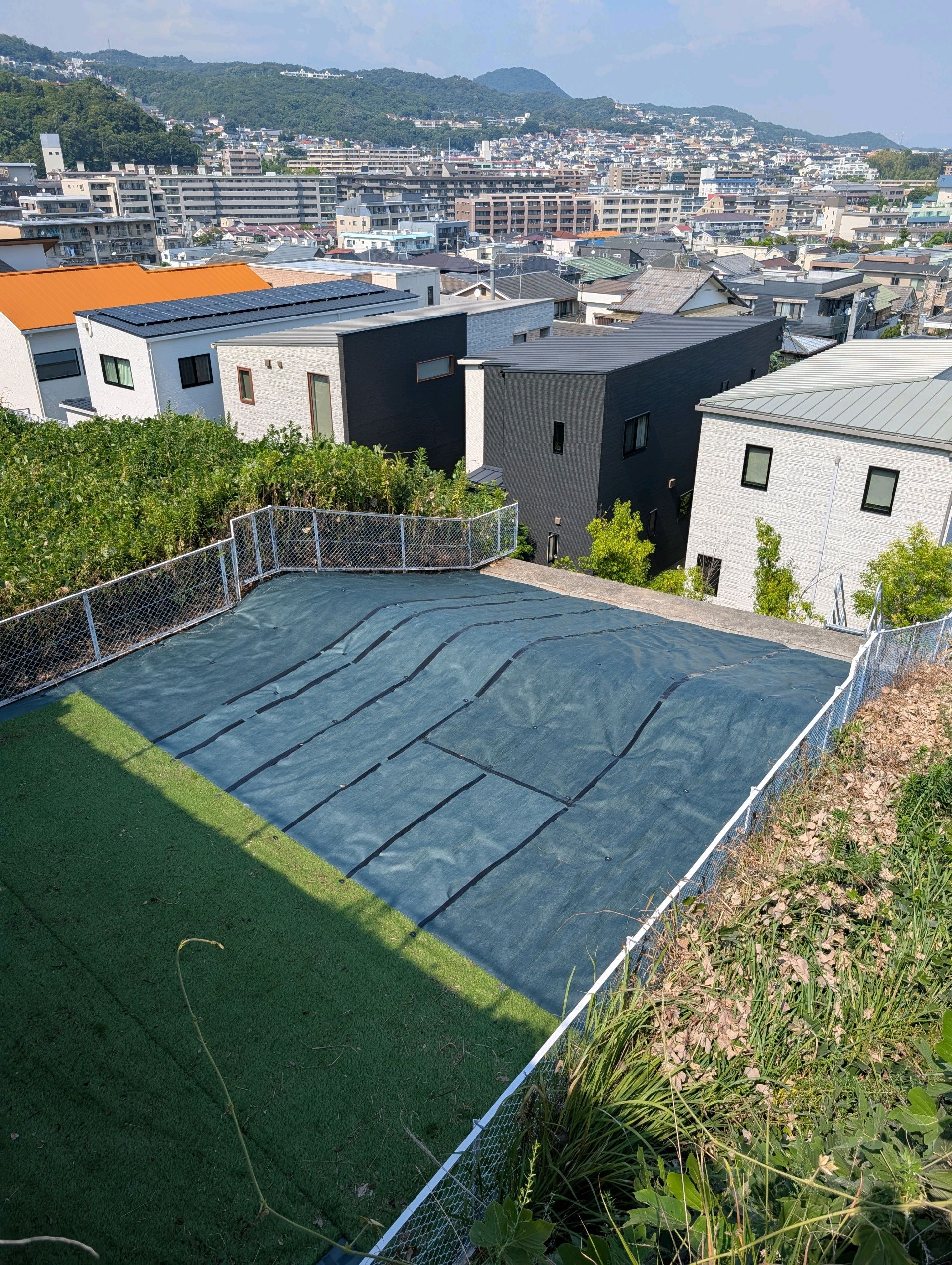R7年8月 西宮市で葛やセイタカアワダチソウ等の草刈り+防草シート施工しました。