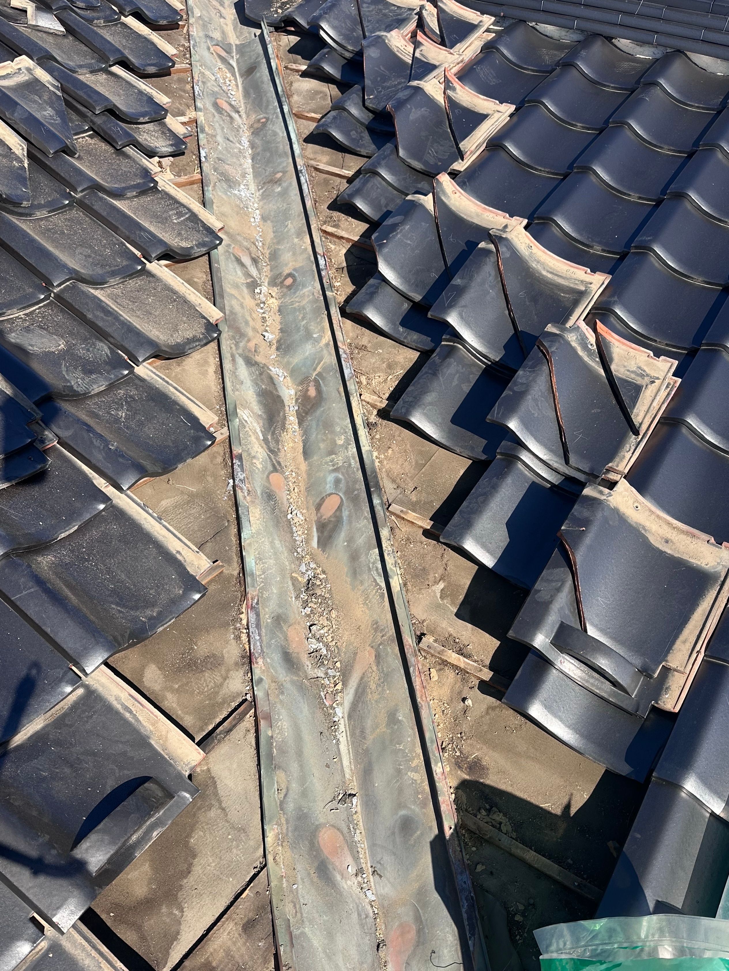 谷の銅板が腐食して雨漏りしてるのでステンレス谷へ交換致しました。