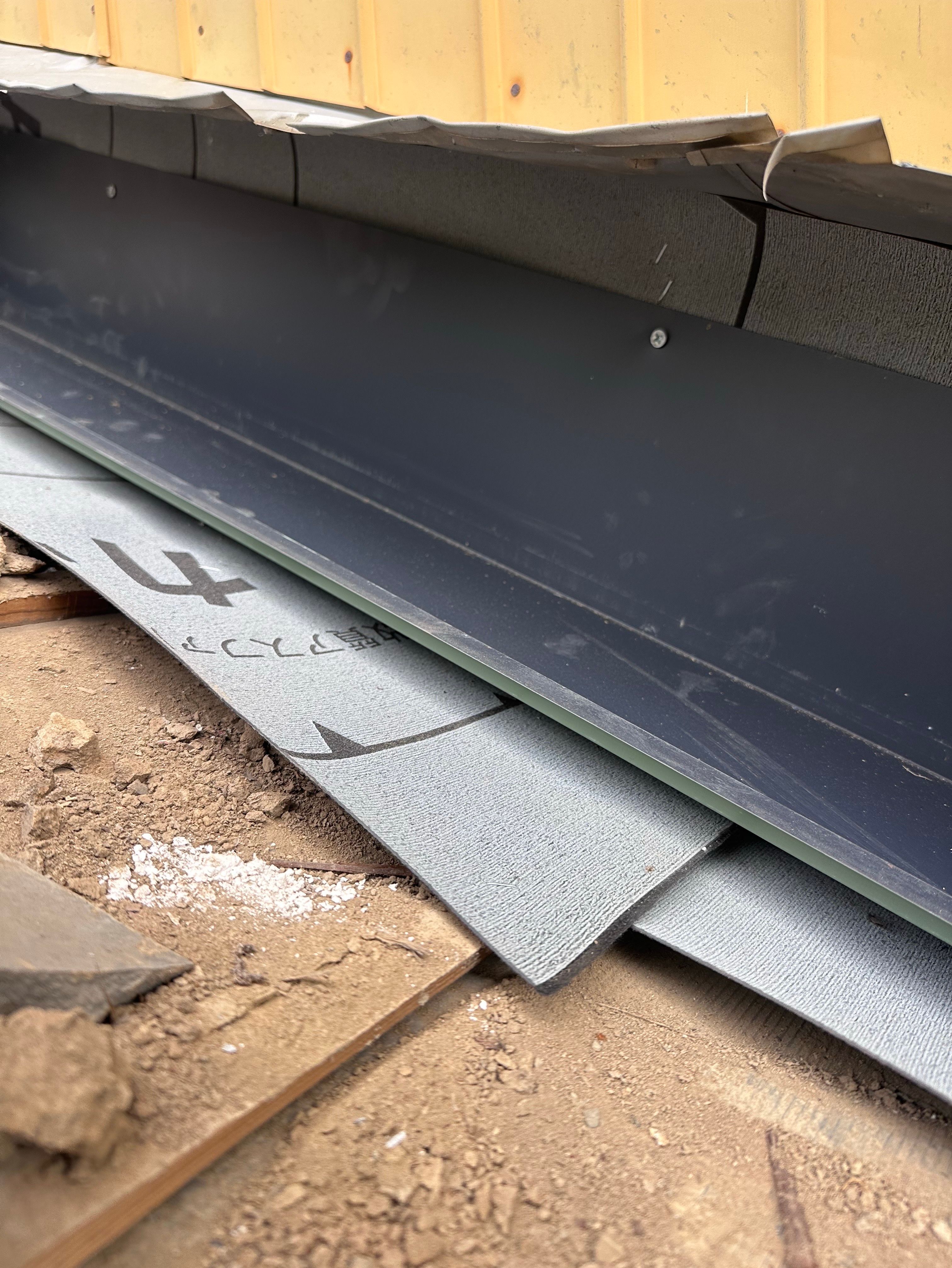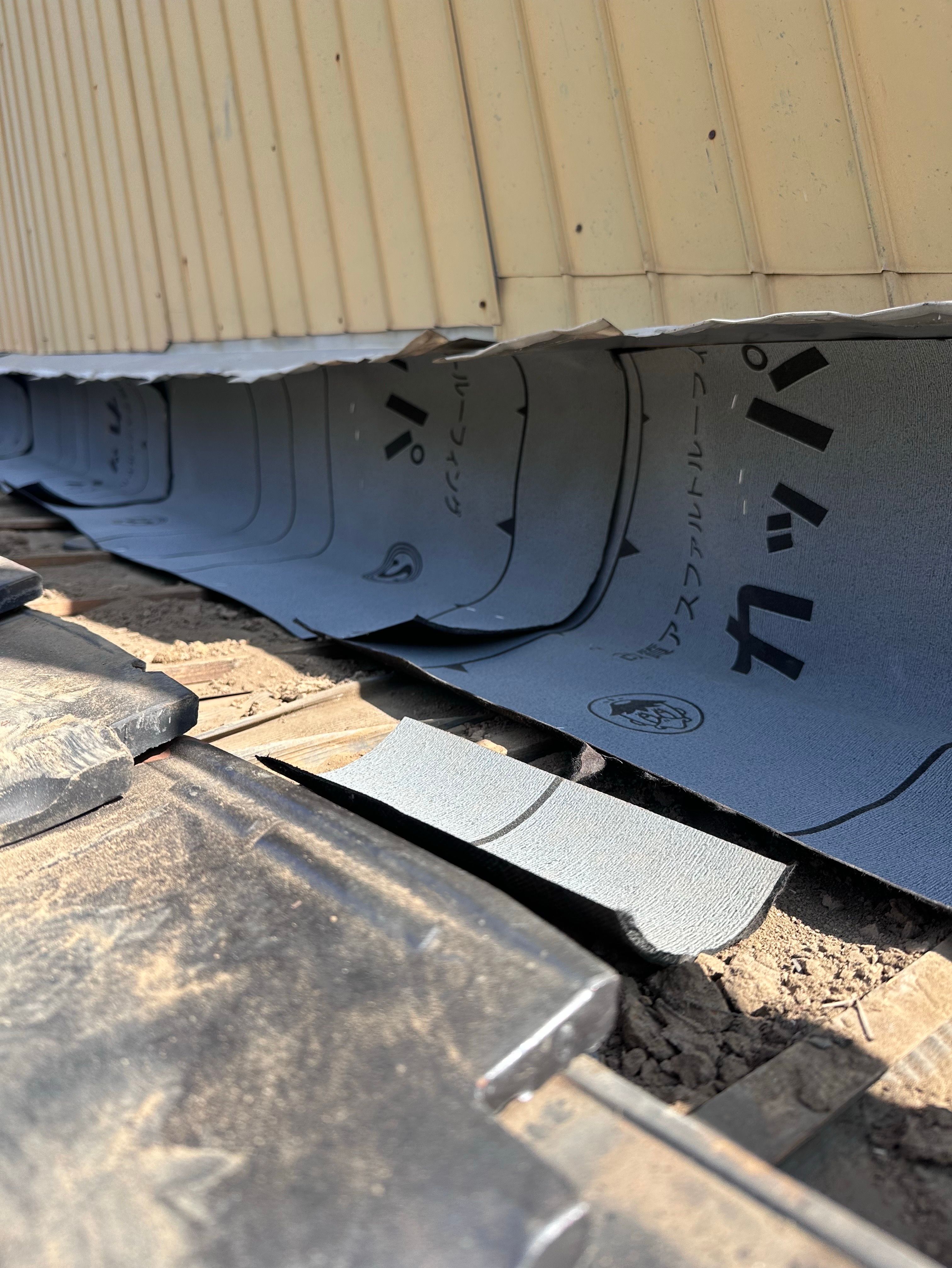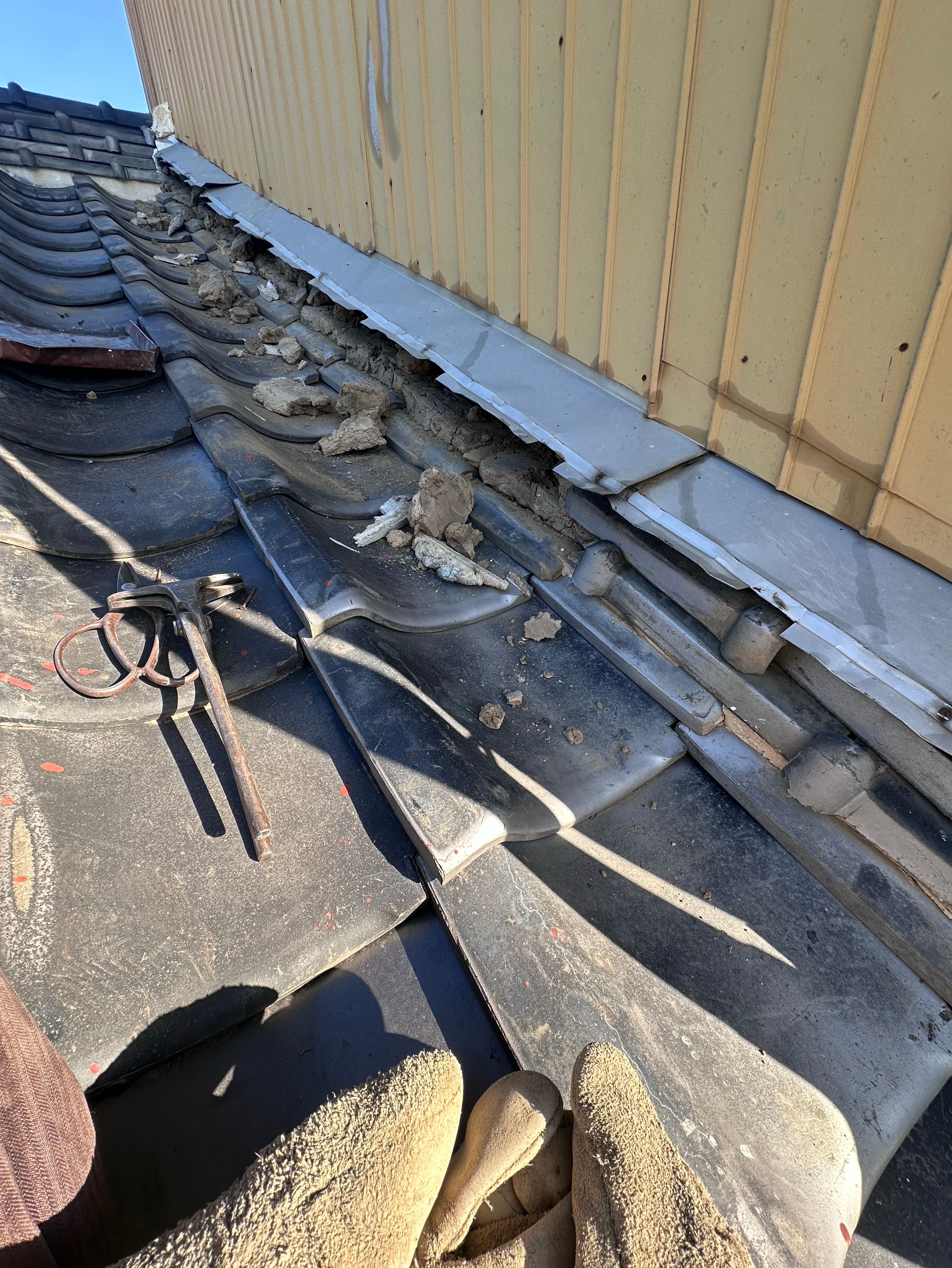 この捨谷は築30〜以上の家にはあまり入っておらず、熨斗瓦で雨の侵入を塞いで施工してましたが、それだけでは雨が侵入してきてしまう為にこの捨谷を入れます。