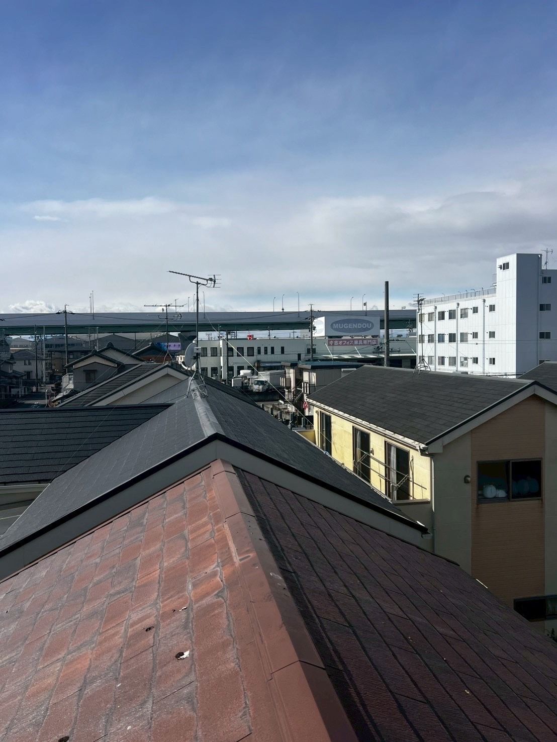 愛知県犬山市にて地デジアンテナ工事ご利用ありがとうございます。屋根上の古いアンテナを撤去し、壁にデザインアンテナを取り付けいたしました