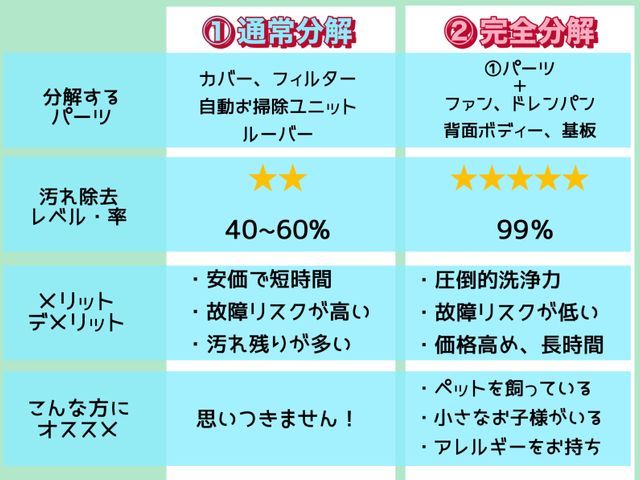 ・完全分解洗浄と普通の洗浄は何が違う? 通常洗浄は、エアコンのカバーなど最低限を取り外して高圧洗浄機て洗う洗浄方法です。 見た目...