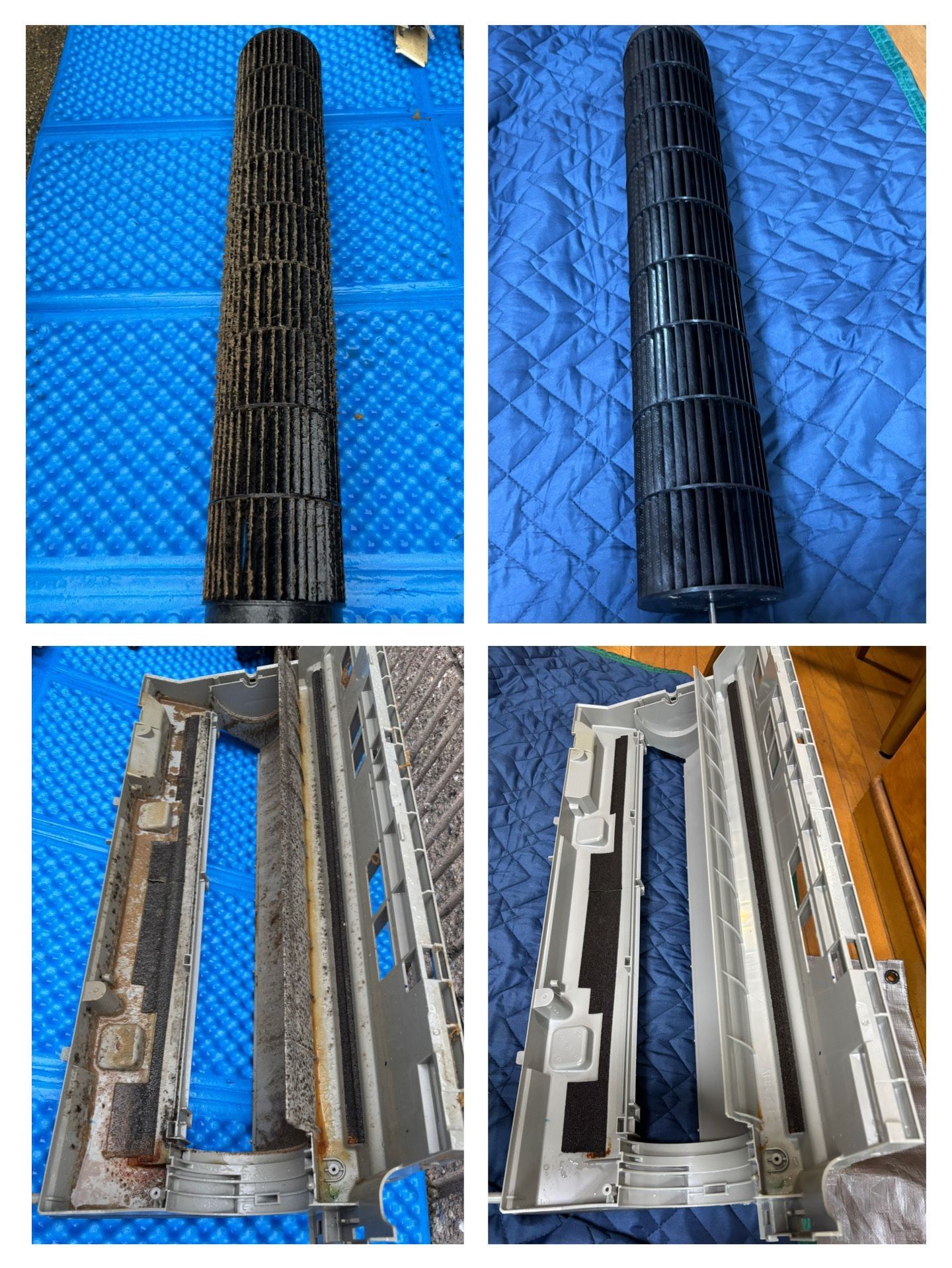 この汚れで一般的なエアコンクリーニングをしてしまうと汚れは落としきれないことはもちろん、エアコンの裏側に汚れを飛ばしてしまう恐れもあります。