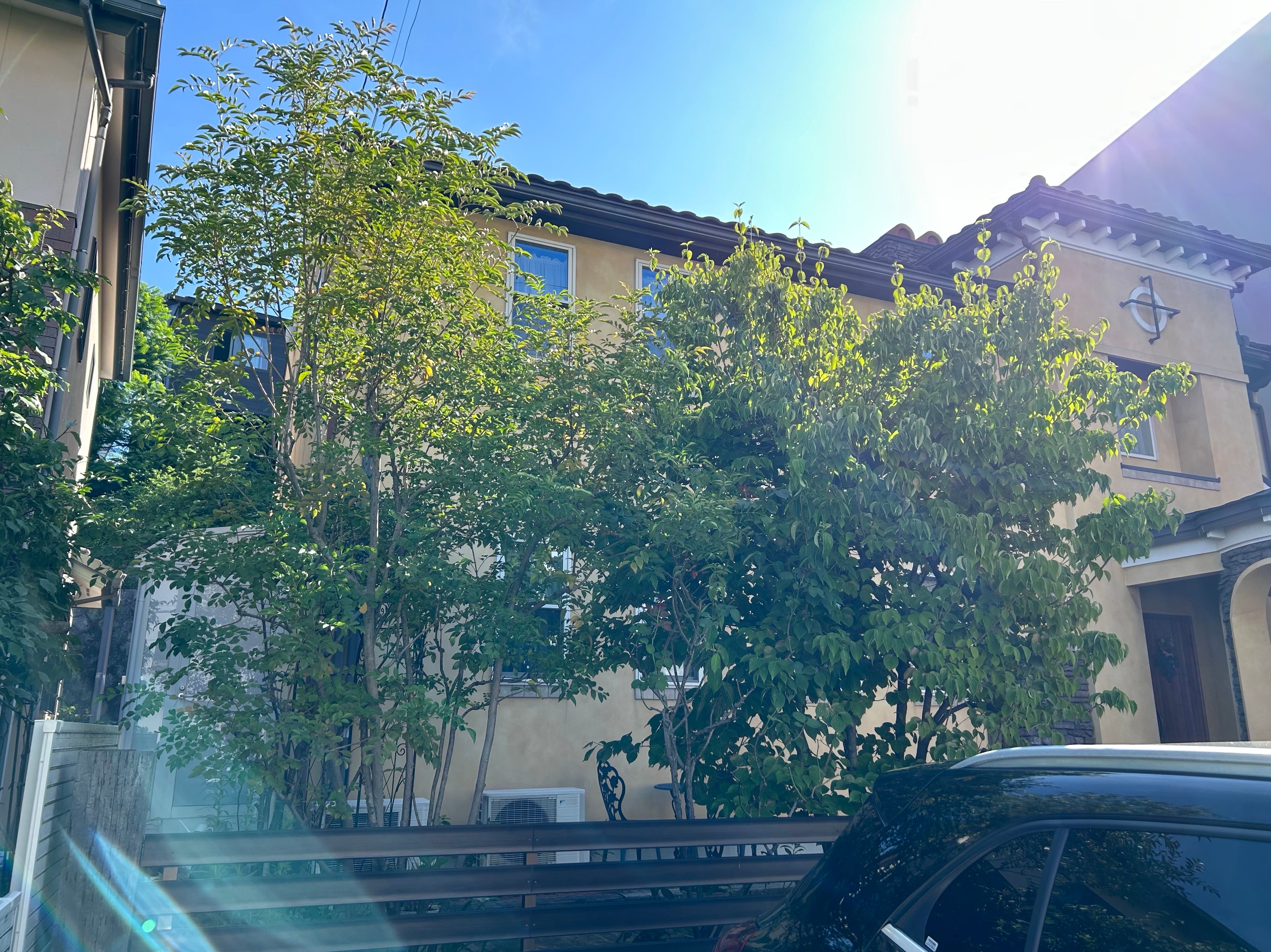 隣地へのせり出しも心配ない位置に植っておりますし、