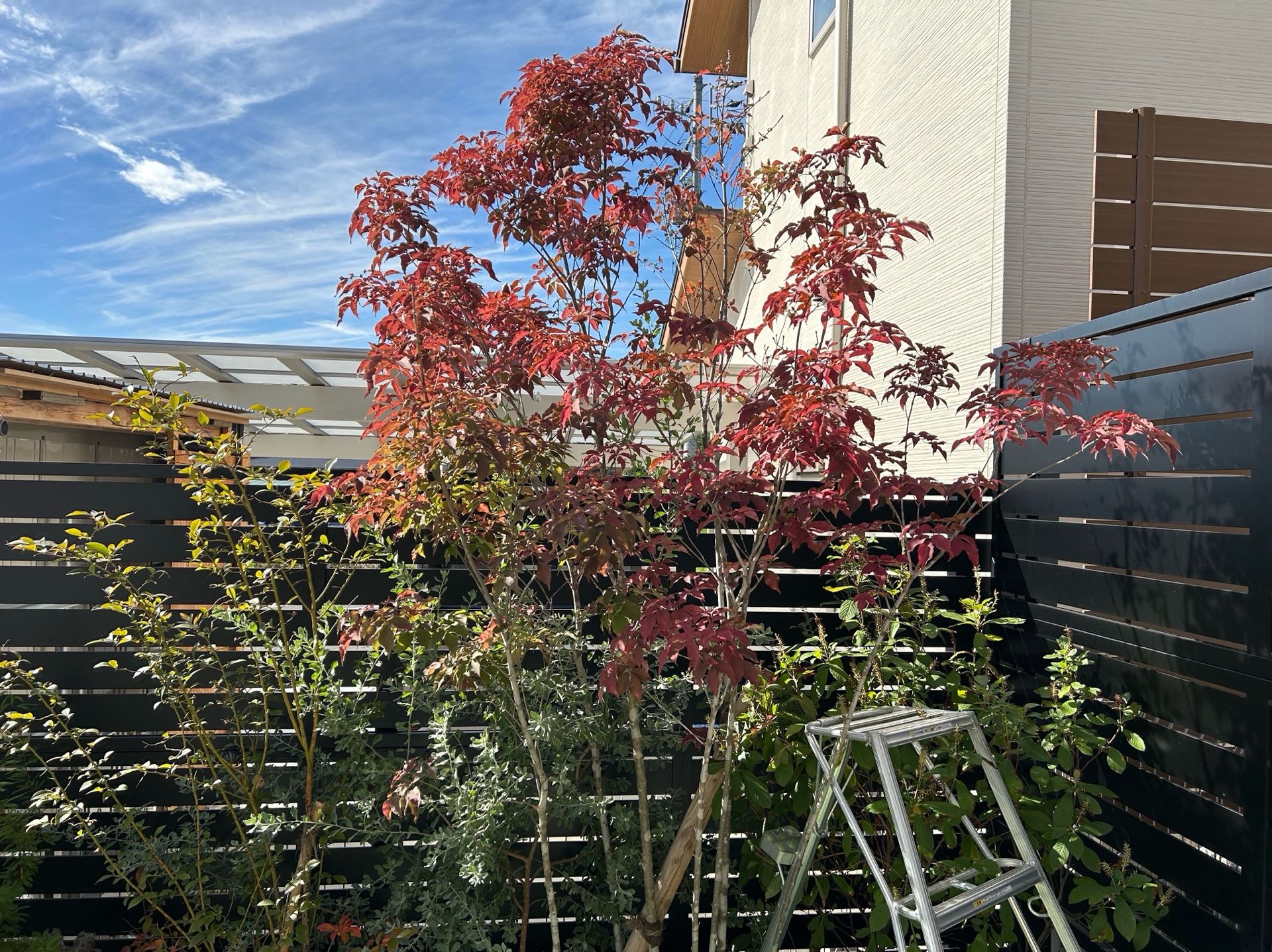 散った時に越境しそうな葉っぱのみをむしることにしました。