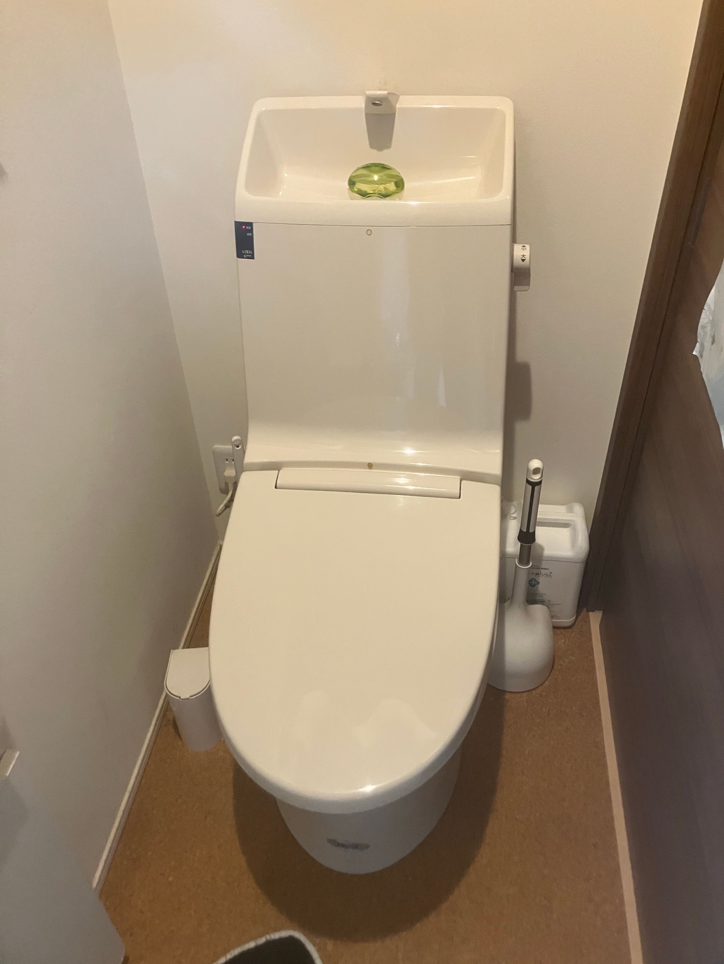 少しわかりづらいですが、便器は真っ白ウォシュレットをクリーム色というツートンカラーで仕上げました。組み合わせ次第で、いろんなことができます。
