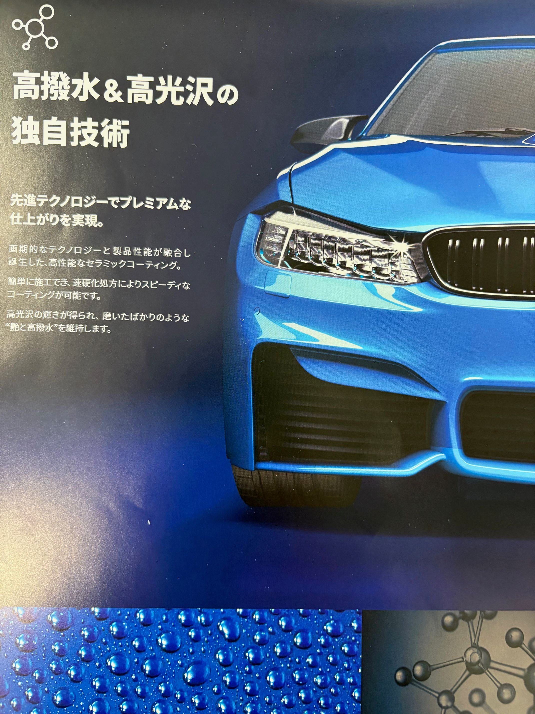 2.アメリカ製 3Mセラミックコーティング 素晴しい撥水性能と高光沢が特徴です、メーカー公表耐久年数3年です。3Mは日本でも板金屋さんをはじめ信頼と実績がある国際的メーカーです。