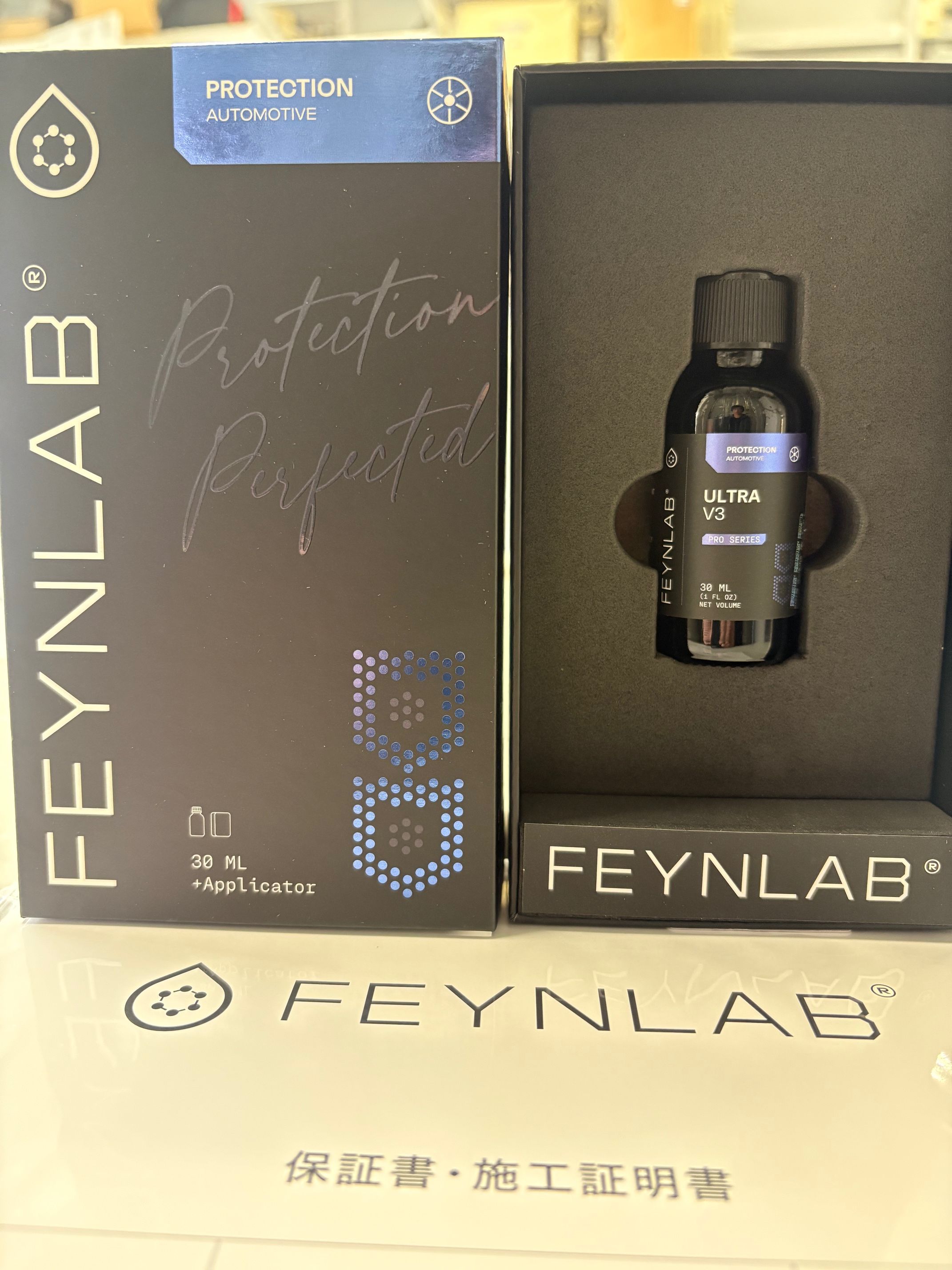 3.アメリカ製 FEYNLABウルトラV3 セラミックコーティング溶剤 深い艶とメーカー公表耐久年数5年とトップカテゴリーの溶剤です。施行に熟練された技術と経験が必要な商品です。