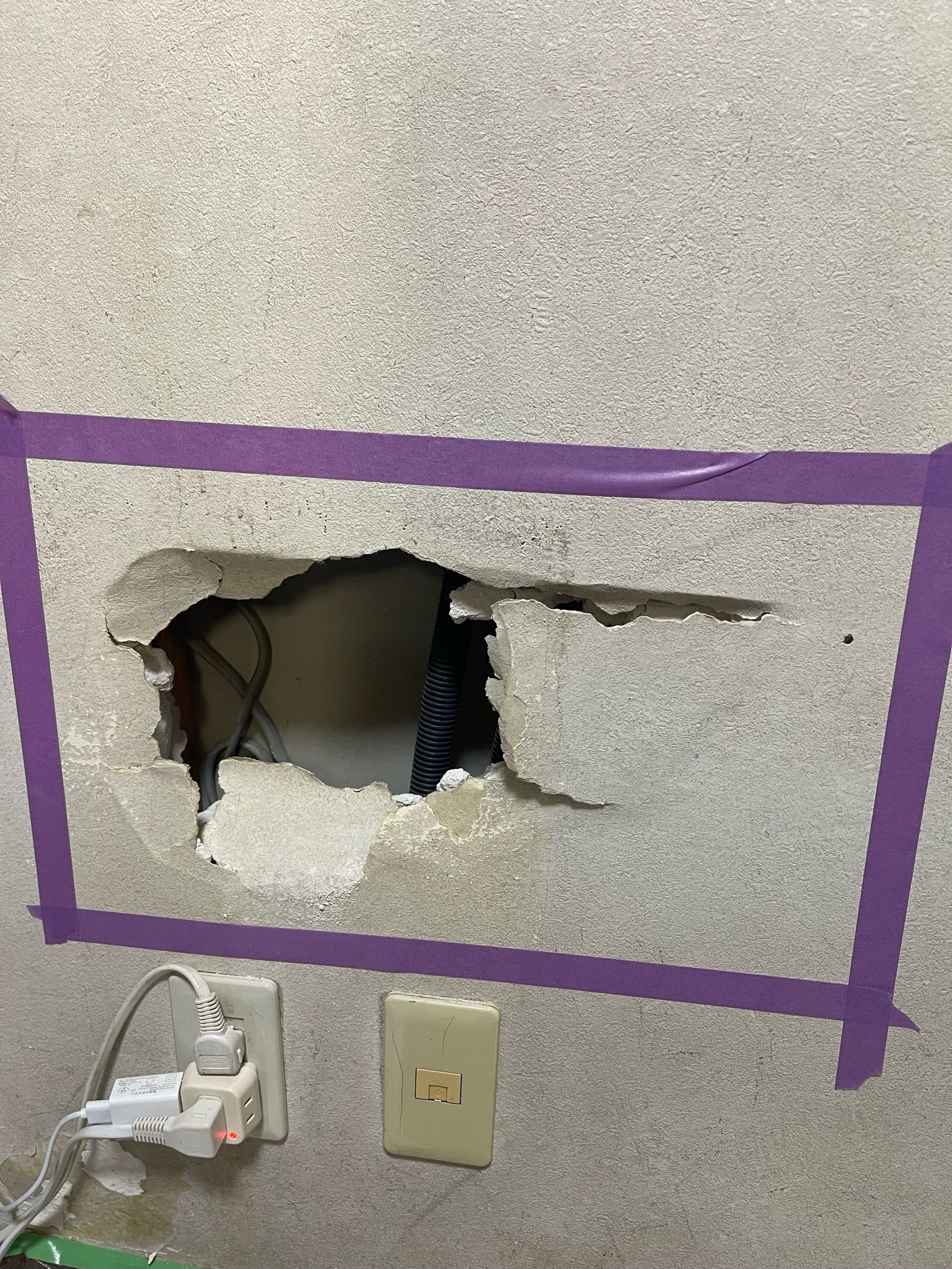 今回は電気ボックスに近い箇所の壁穴及び壁紙補修作業になります🙂↕️