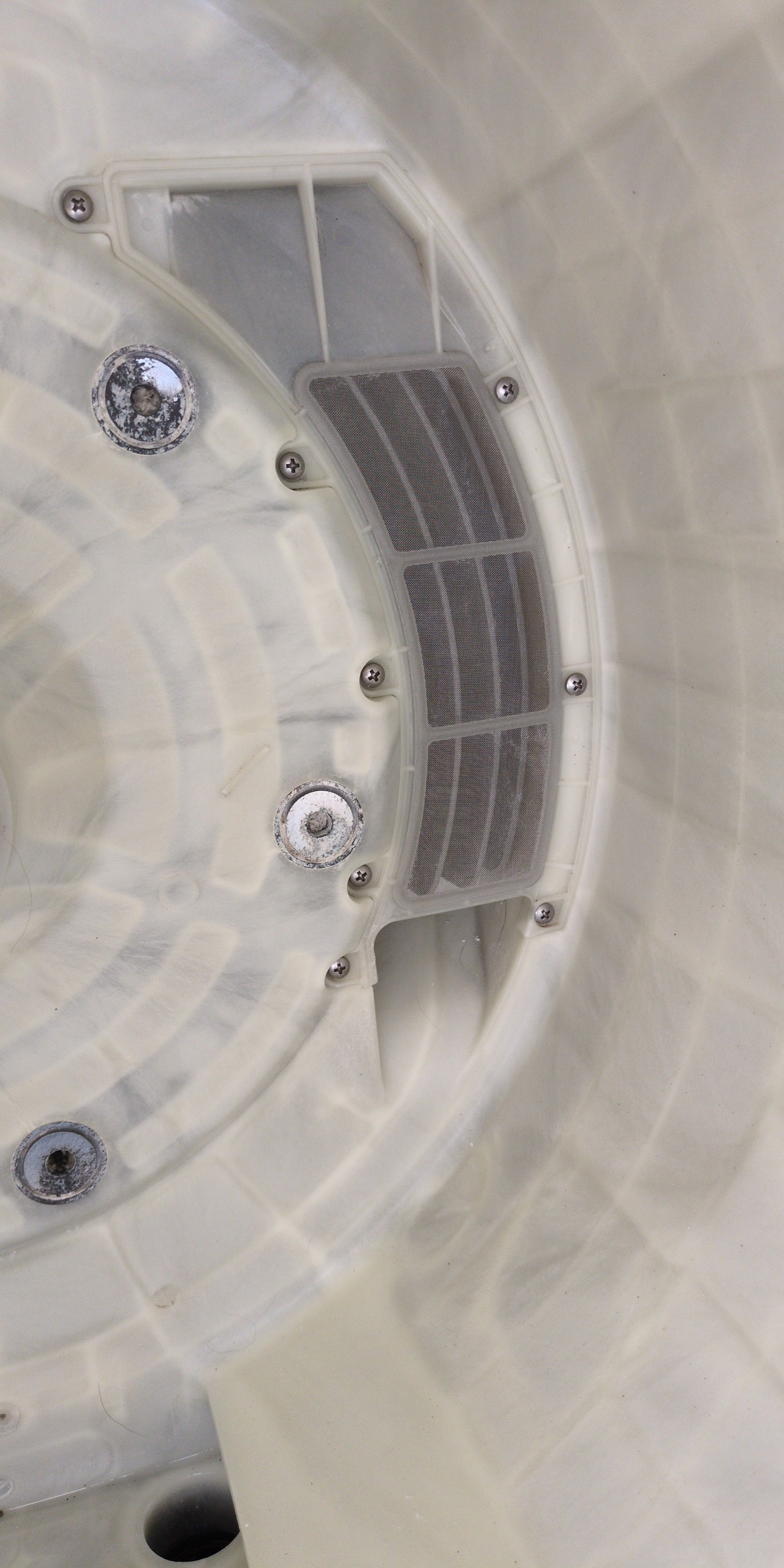 さらに今回の分解で気になったのが、洗濯槽脱水受けカバーの設計変更です。