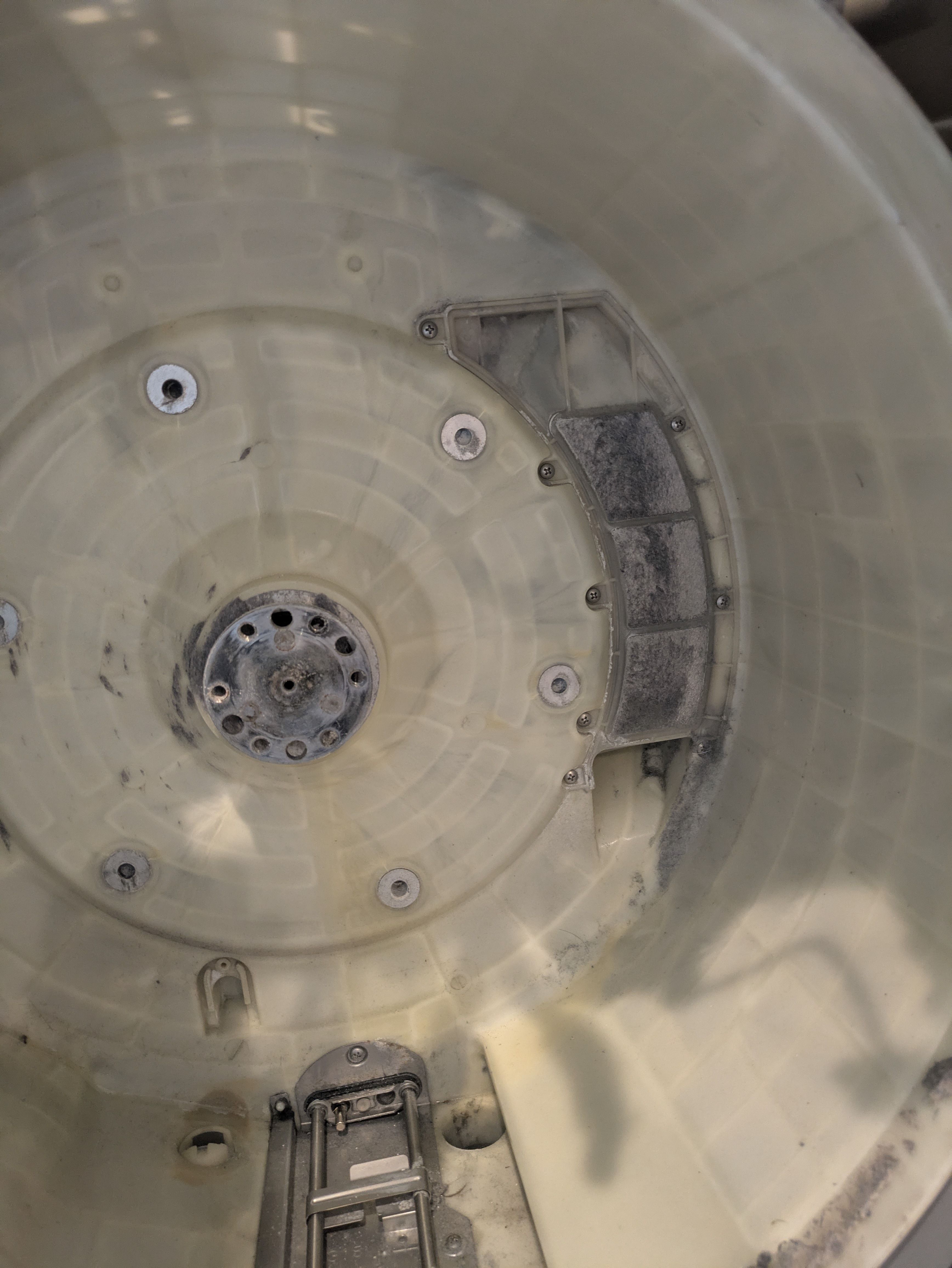 本来、埃をキャッチするはずのドラム裏のフィルターが、ご覧の通りびっしりと詰まっていました(画像参照)。これでは空気の循環が悪くなり、乾燥効率が落ちてしまいます。