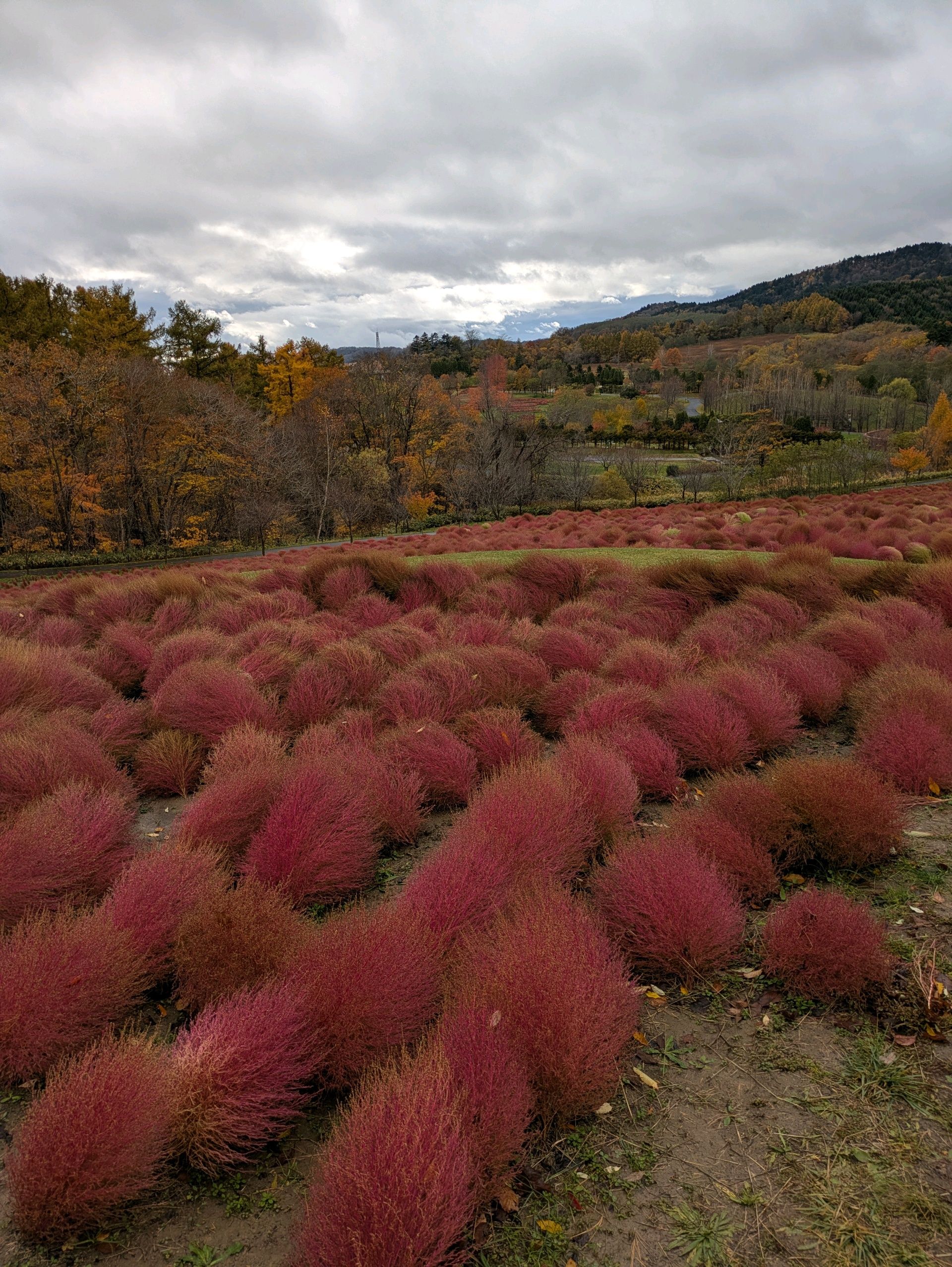 旅先では、白玉ぜんざいのような温かい甘いものを味わったり、コキアや紅葉に染まった丘を眺めたりしながら、ただただ「のんびりする時間」を楽しみました。