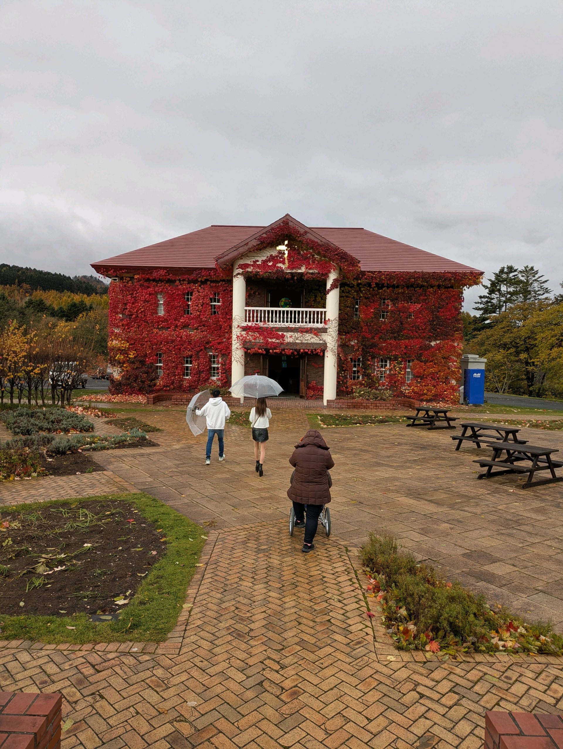 栗山町でも、ツタで真っ赤に染まった建物や、落ち葉が敷きつめられた広場]]など、秋ならではの景色を楽しみながらぶらぶらと歩きました。
