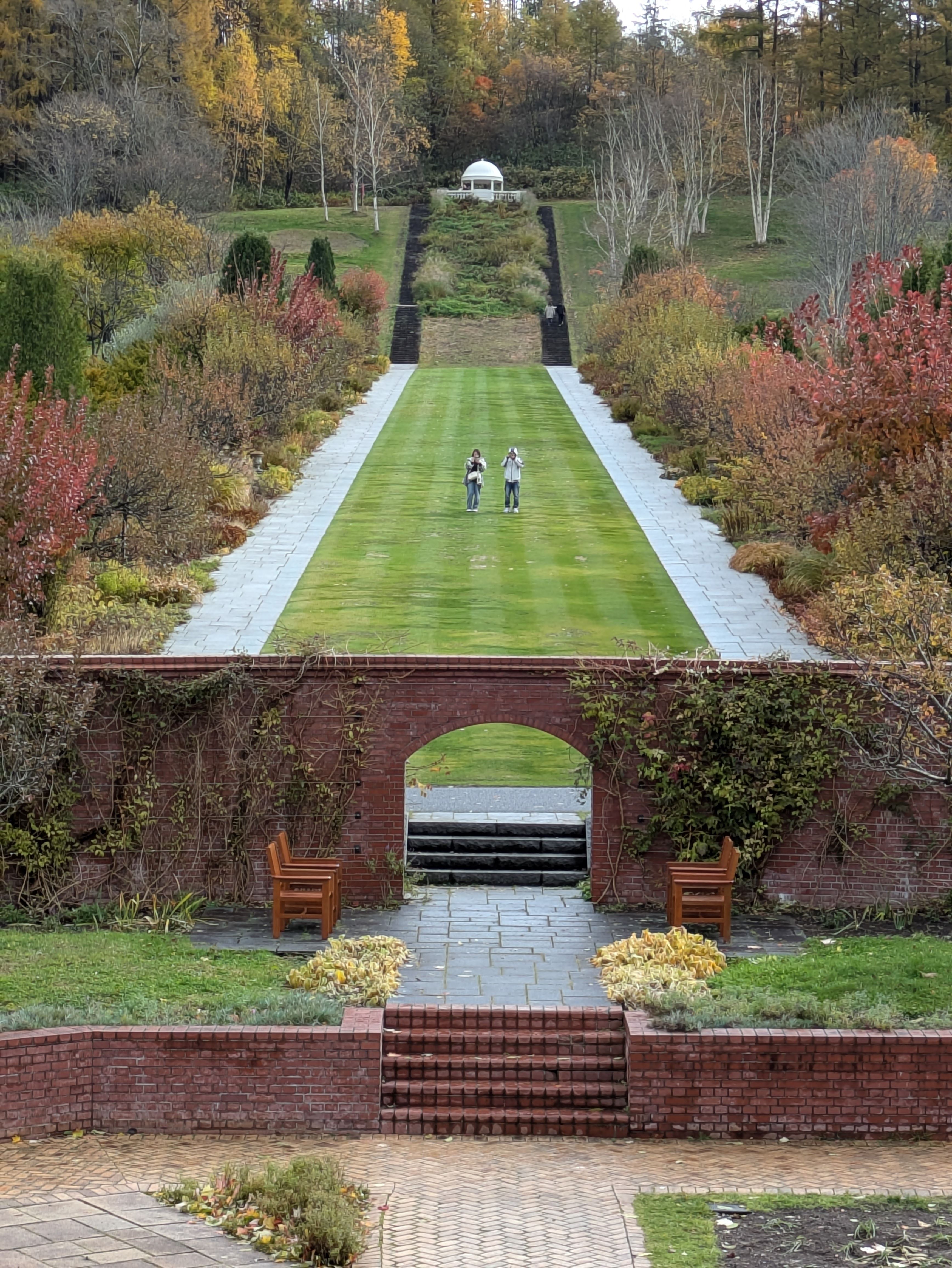 由仁町では、広い芝生の庭園と色づいた木々の中を、夫婦でゆっくり散策しました。
