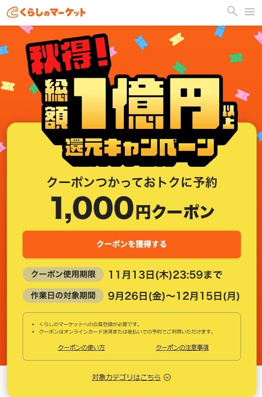 ✨くらしのマーケットの“秋得!総額1億円以上還元キャンペーン”✨