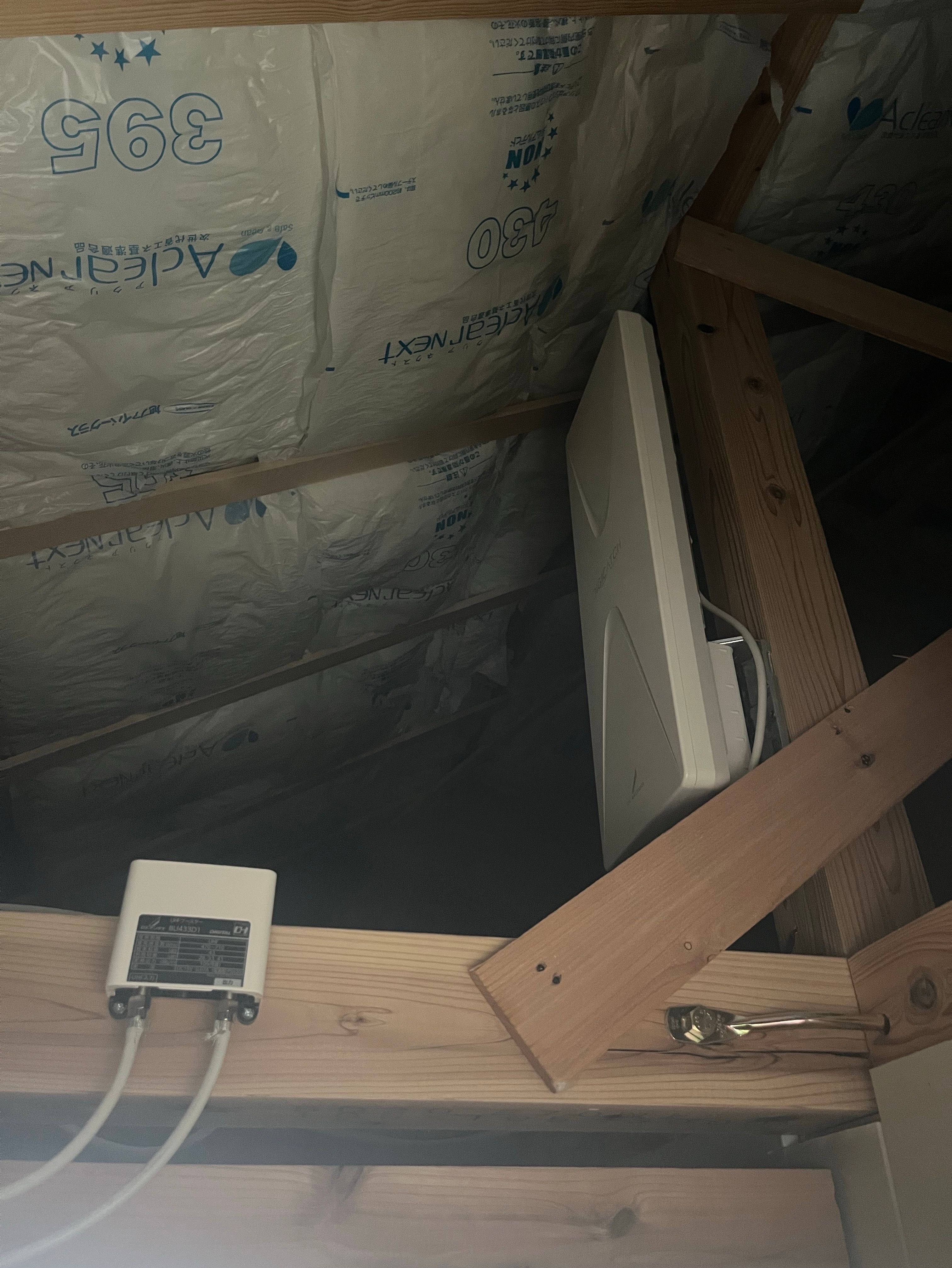 新築の戸建てのアンテナ設置です!屋外は住居に囲まれていて、アンテナの電波が不安定でした!2F屋根裏で高さを確保しつつの取り付けで問題なく設置可能となりました!😊