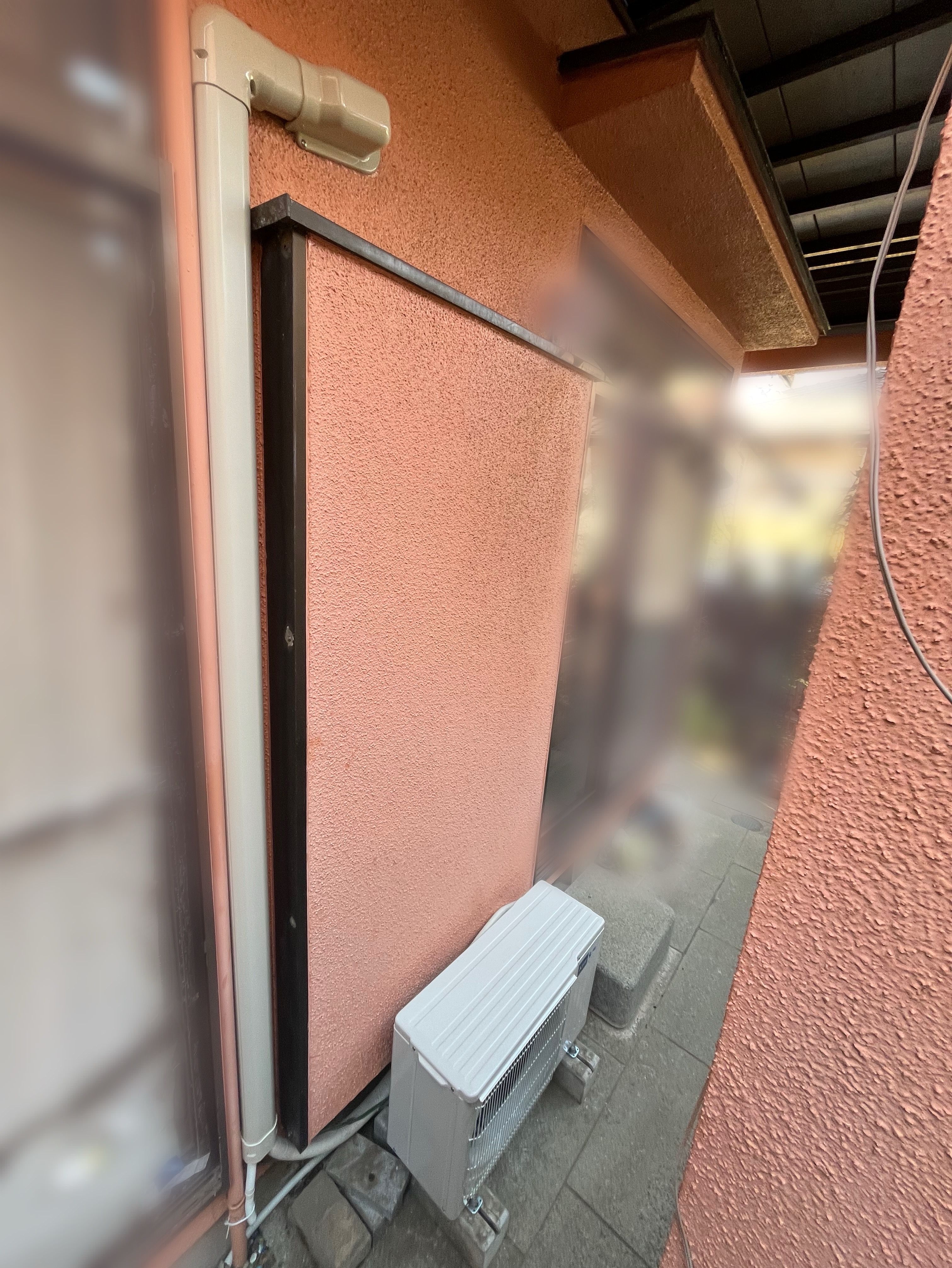 一戸建ての場合は、室内機の本体で配管穴を隠すように施工する事が多いです。