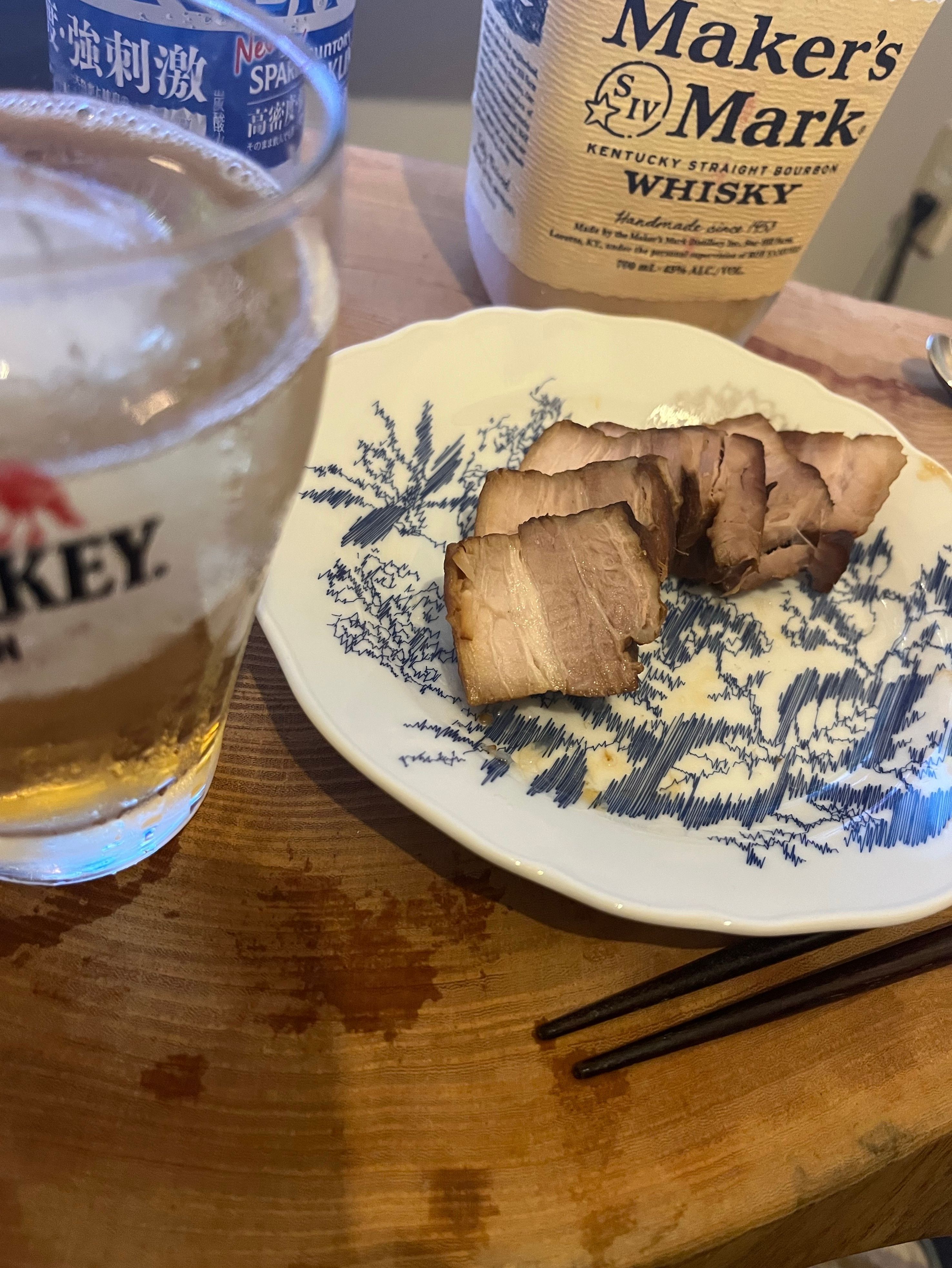 1.豚バラブロックは、油を多めに敷いたフライパンで、強火で4面炒め、焼き目をつける。