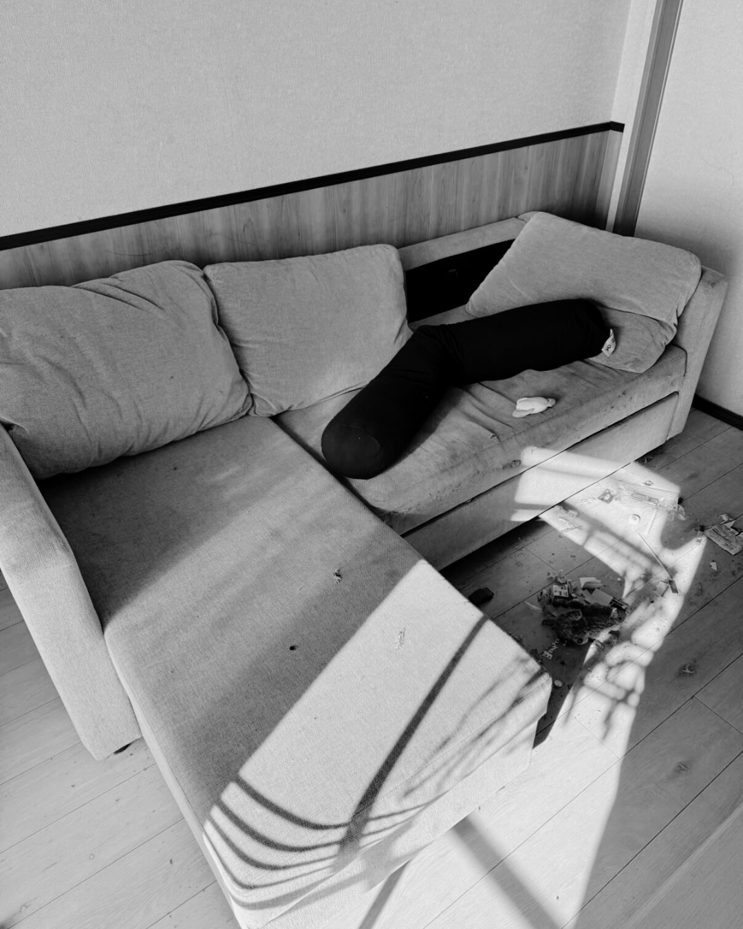 回収作業中、大きな家具を移動させると、その下からはおもちゃの破片や食べカスなどが見つかりました。 これは決して珍しいことではありません。