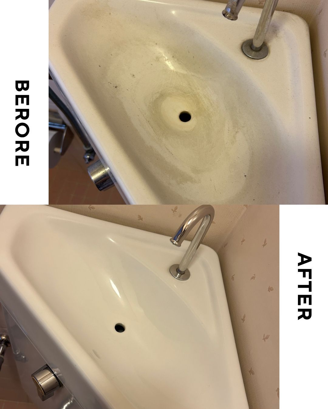 酸性洗剤を使い、尿石を少しずつ溶かしながら専用パッドでこすり落としました。