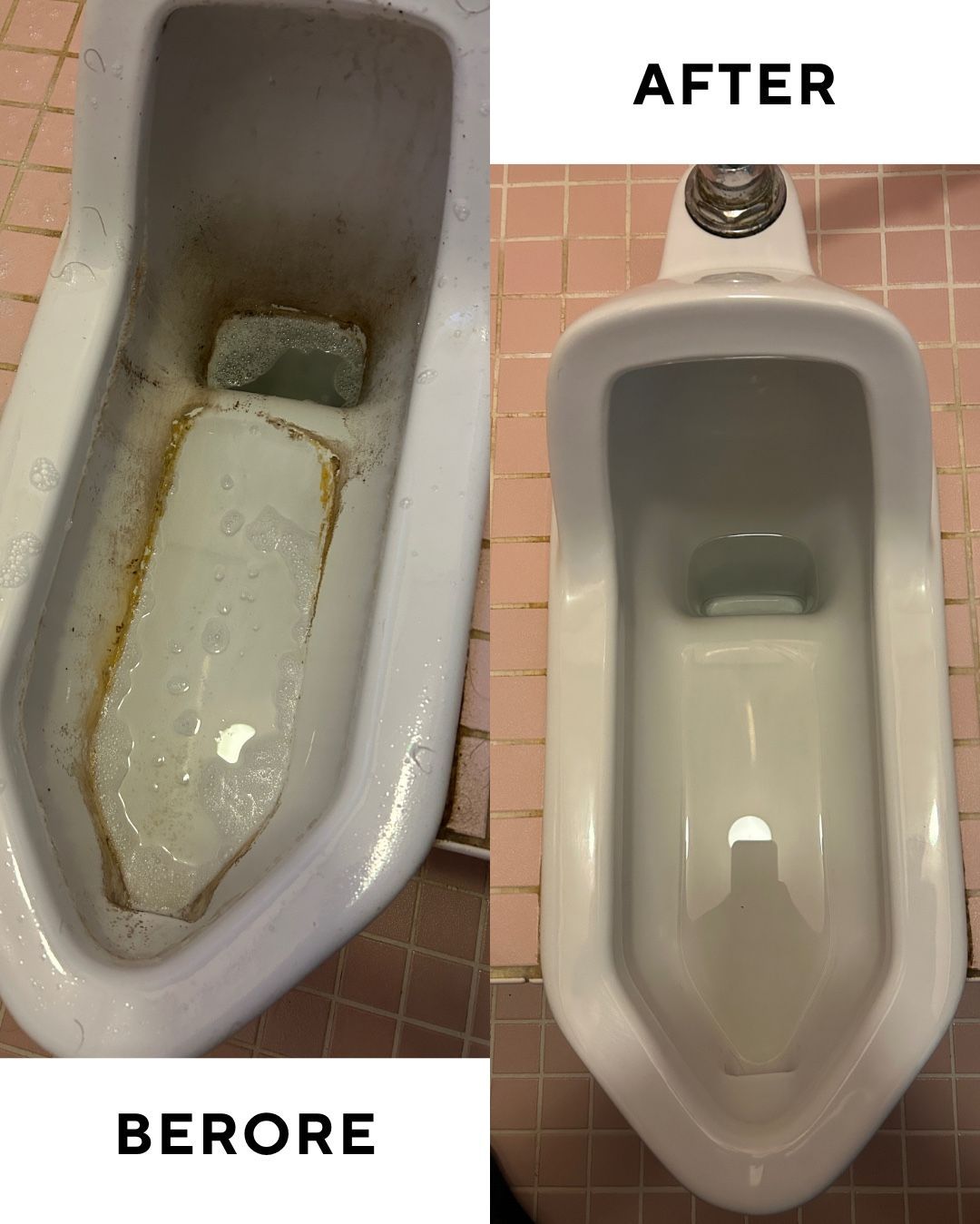 •	水の出口周辺には尿石が固まり、通常の洗剤では落とせないレベル。