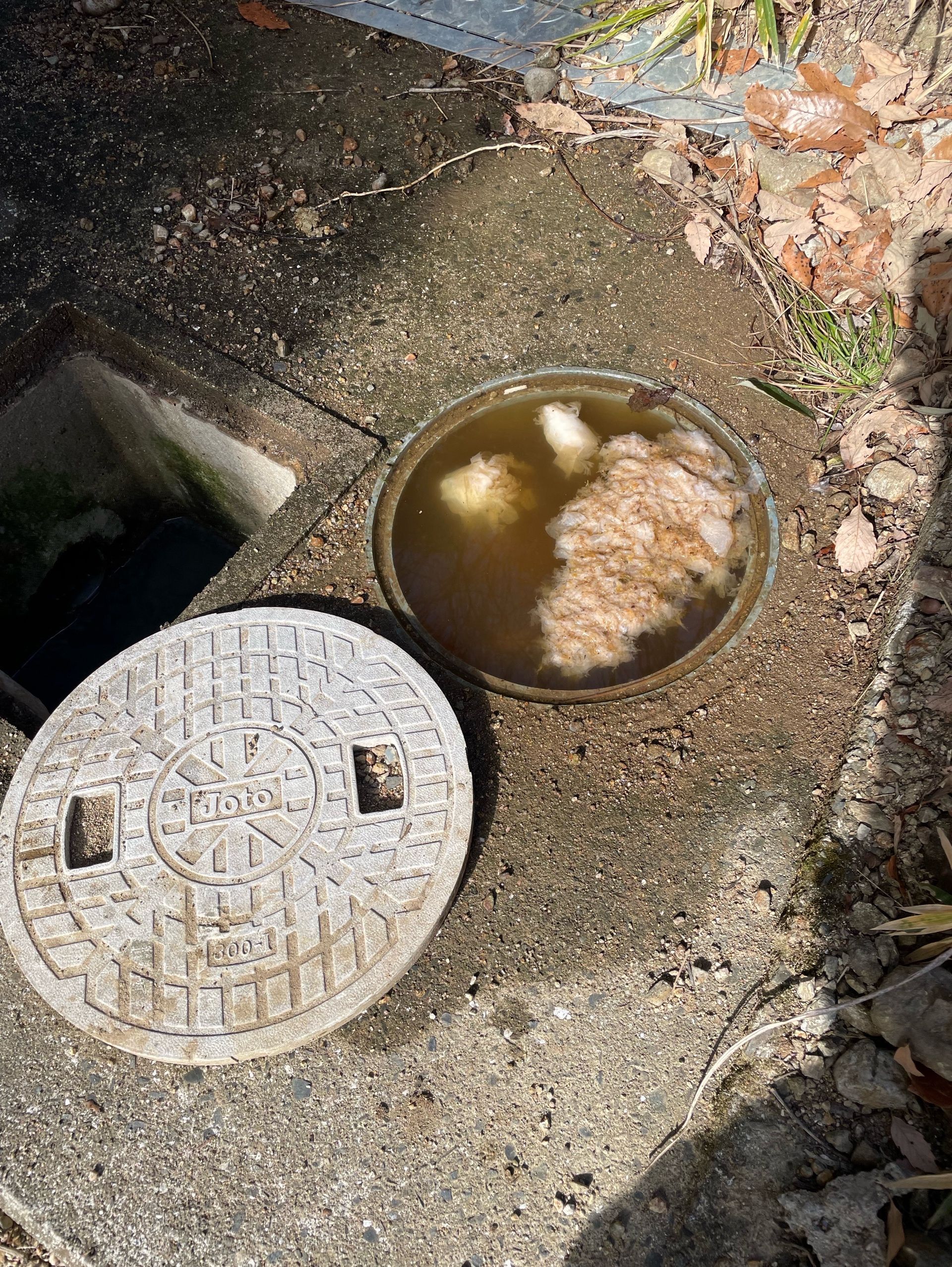 あと半年か年に一回ぐらいで良いので外の枡の蓋を開けて外水道のホースを使って枡内に水を大量に流すなどのお手入れをしましょう!