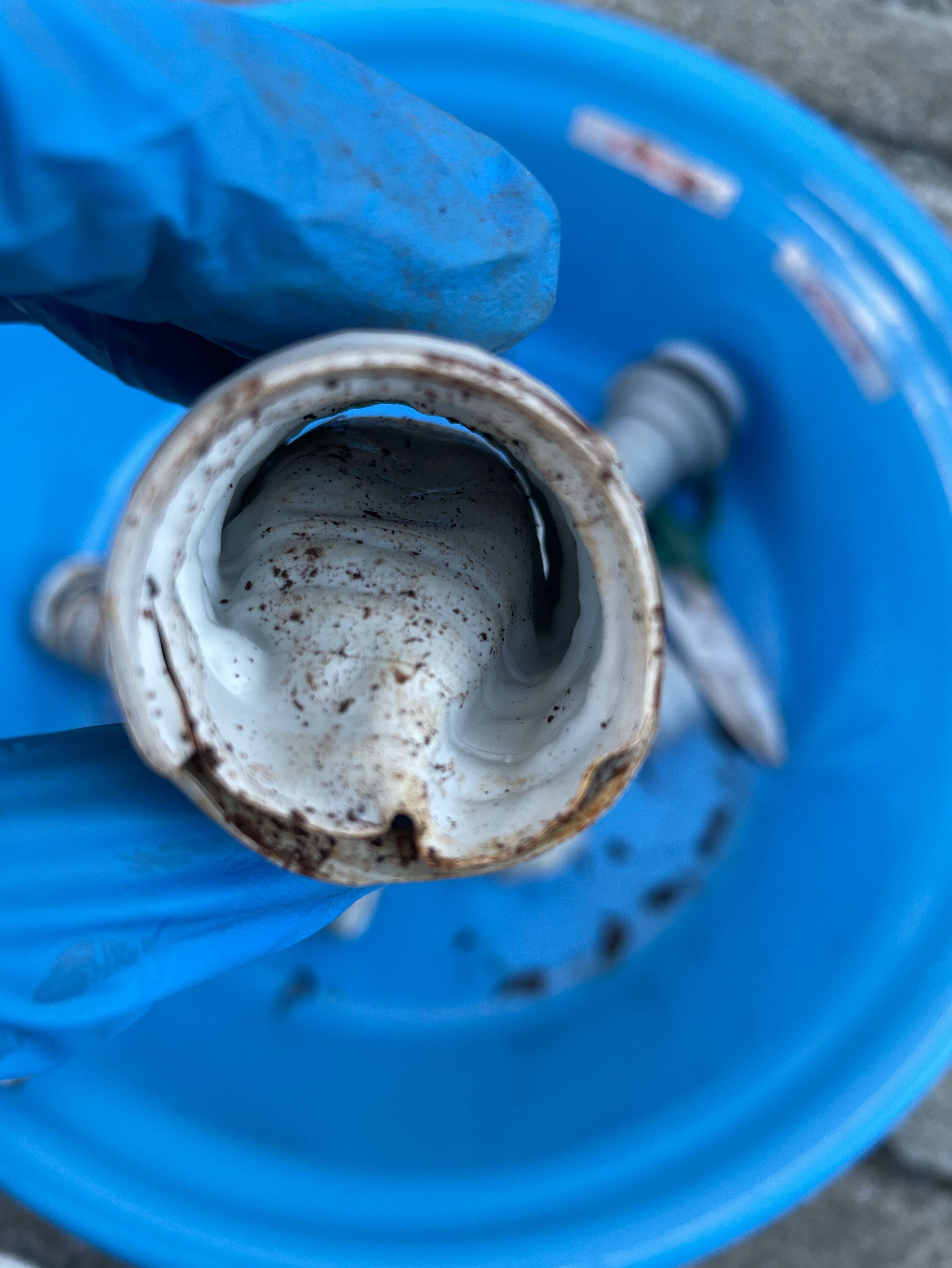 念のため外の枡から室内排水管に向けてホースで洗浄かけてみた