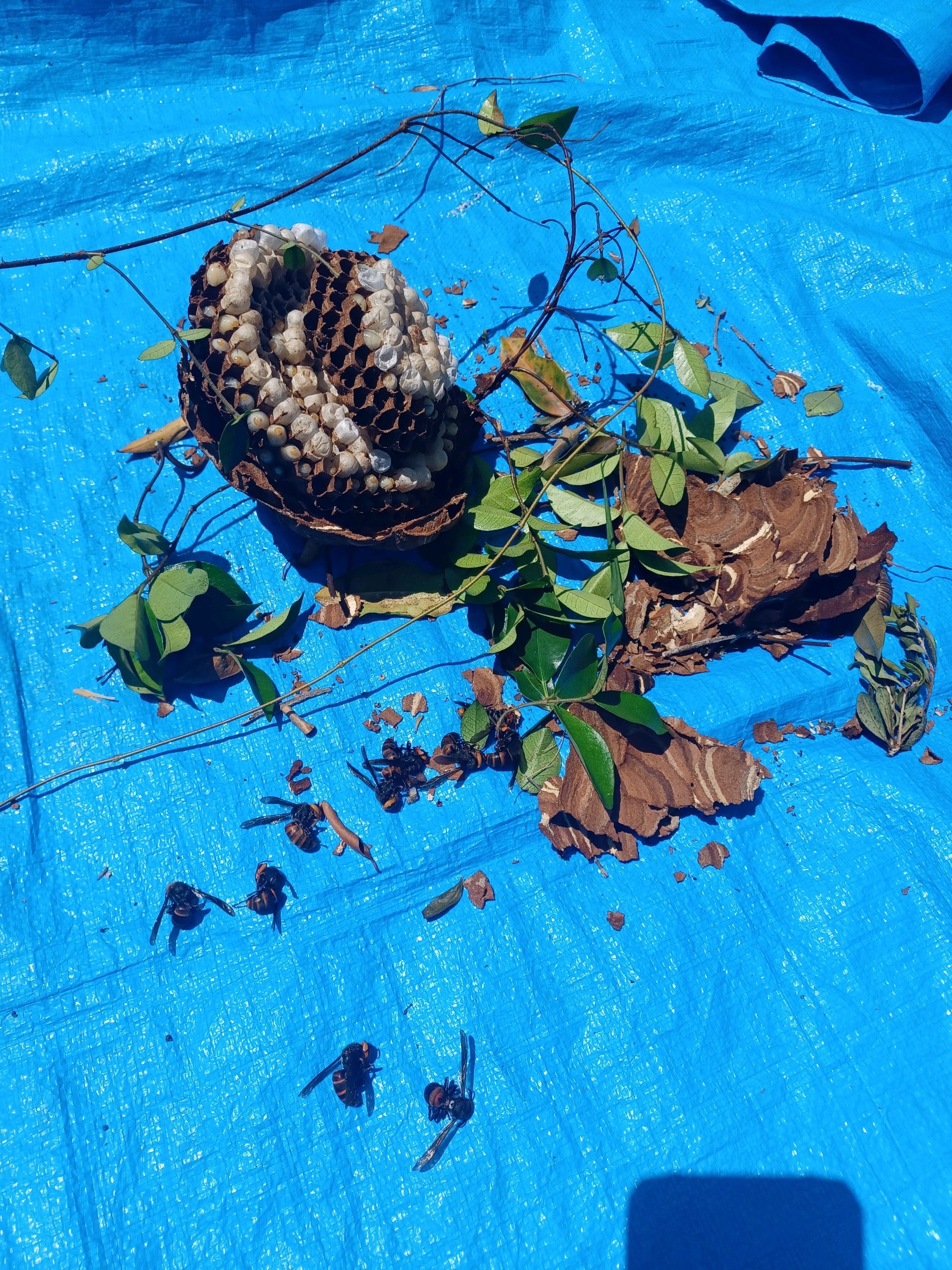 お客さまが剪定中に手を刺され駆除のご依頼頂きました。