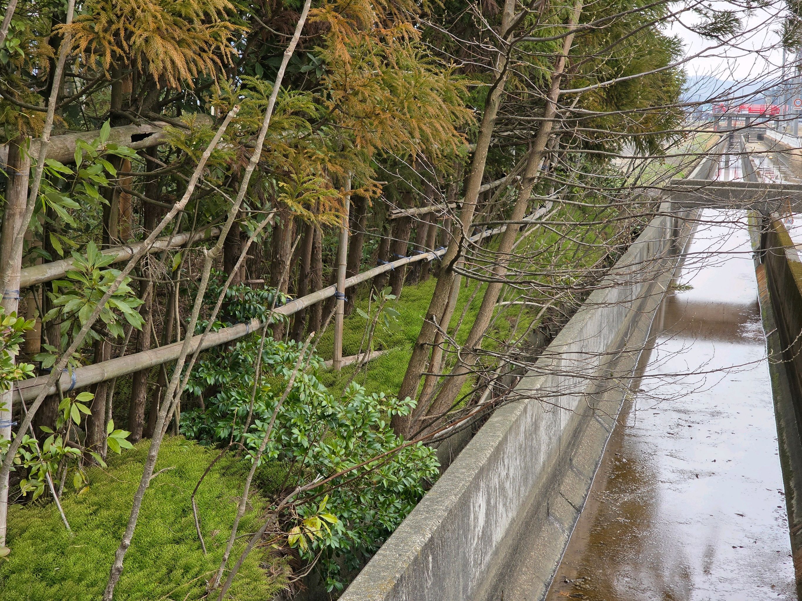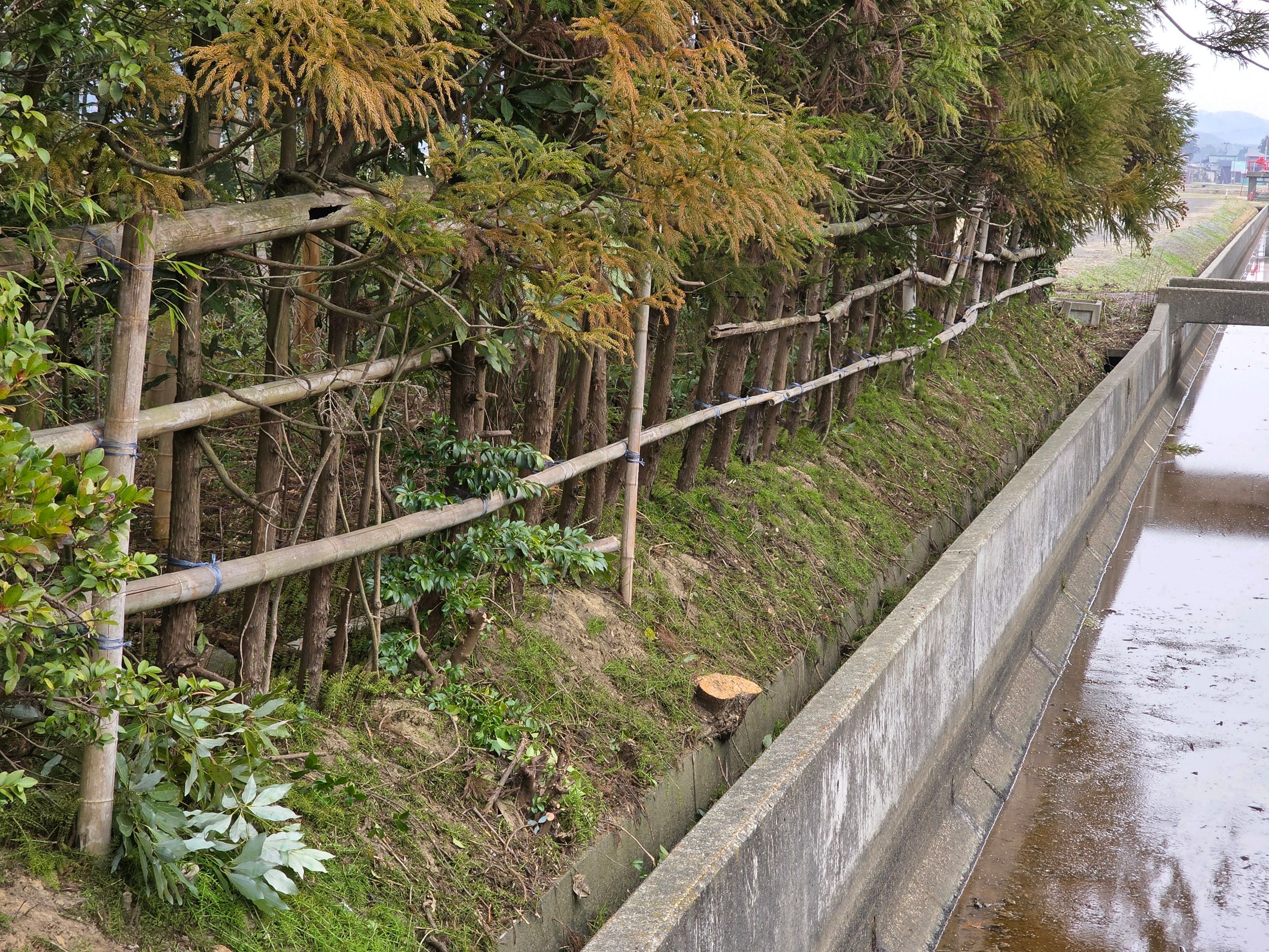 水路沿いは県の敷地となっていますが、近隣住民の価値観では昔から水路に隣接する家が整備することとなっているようです。