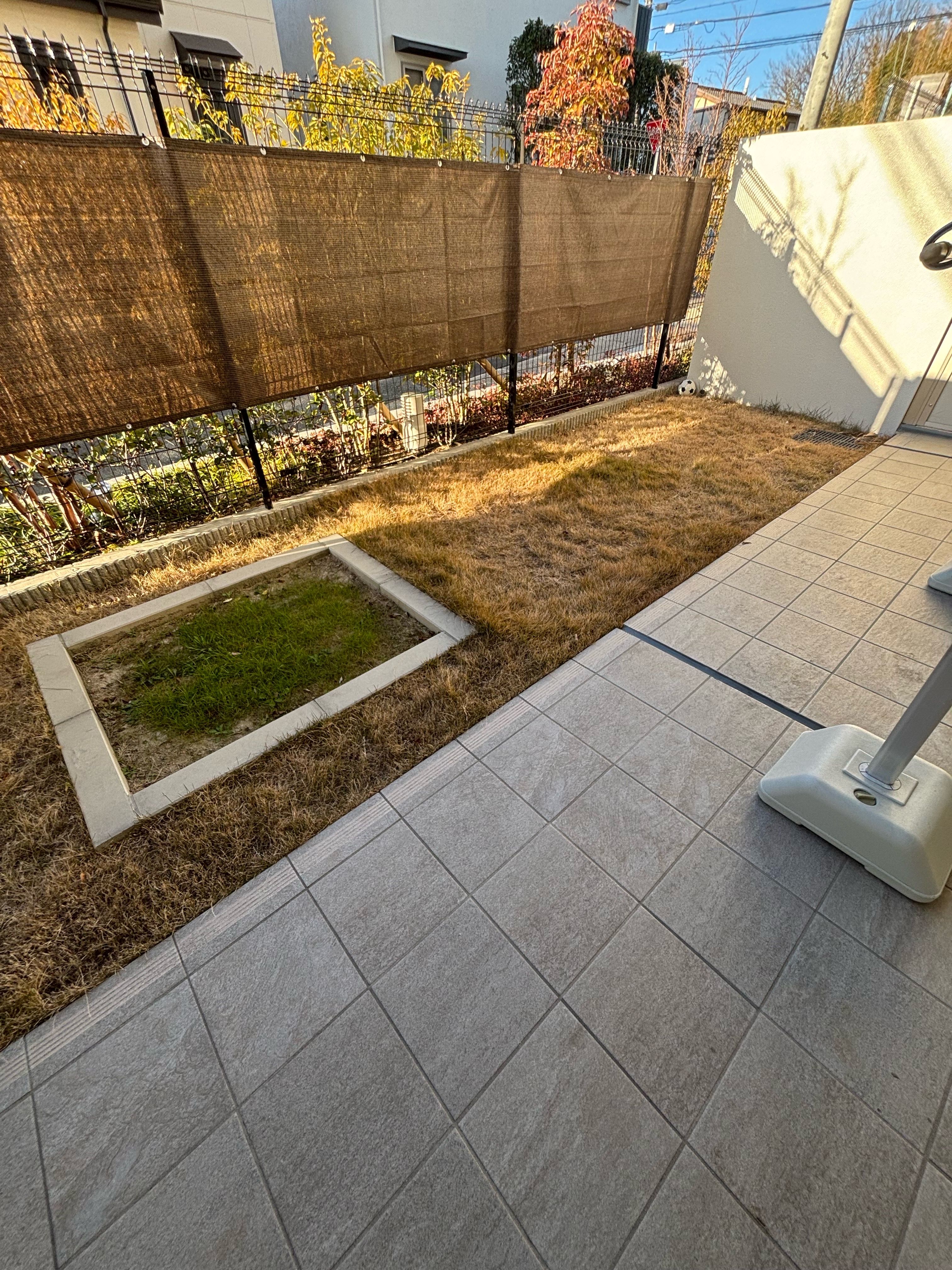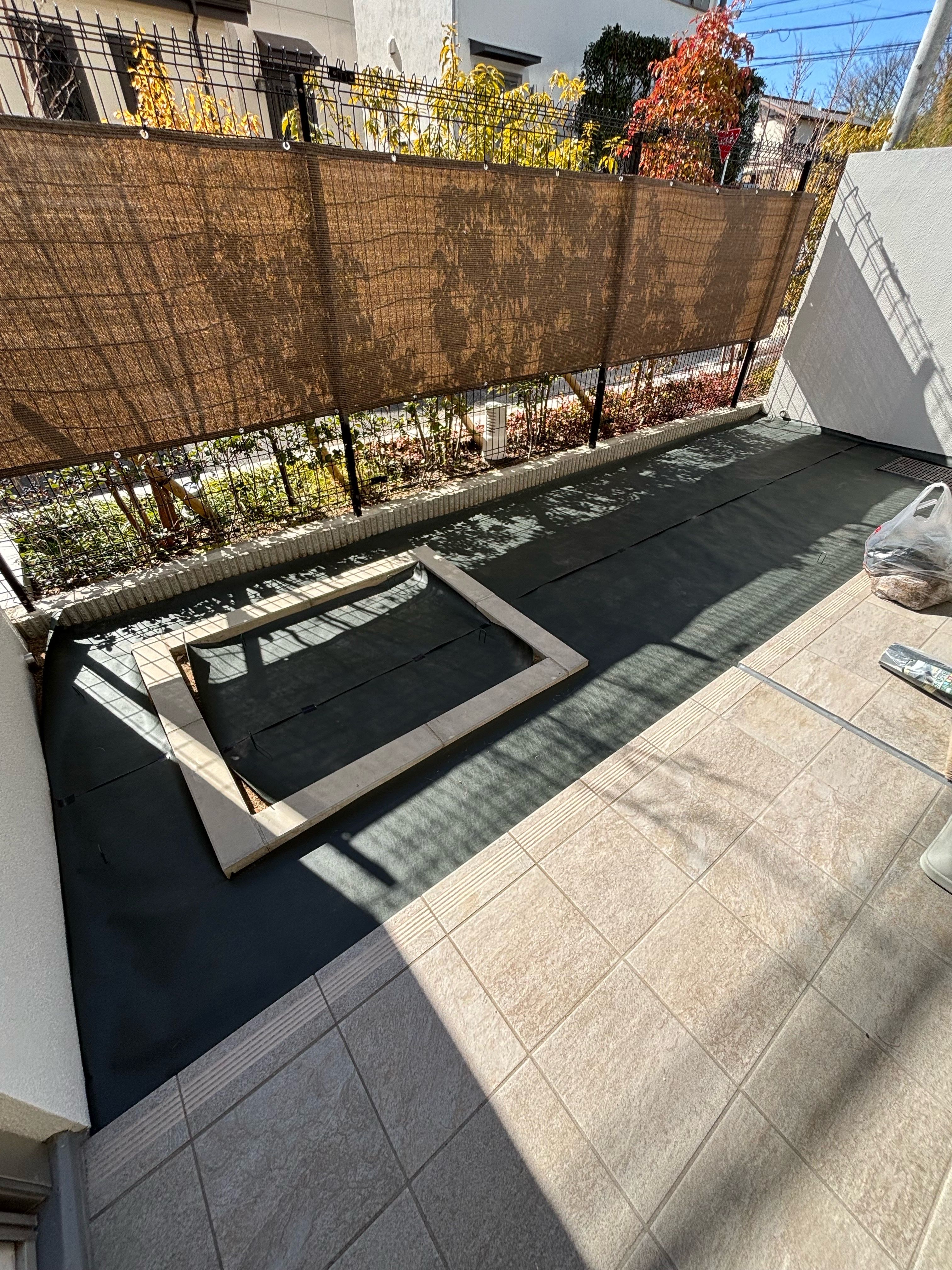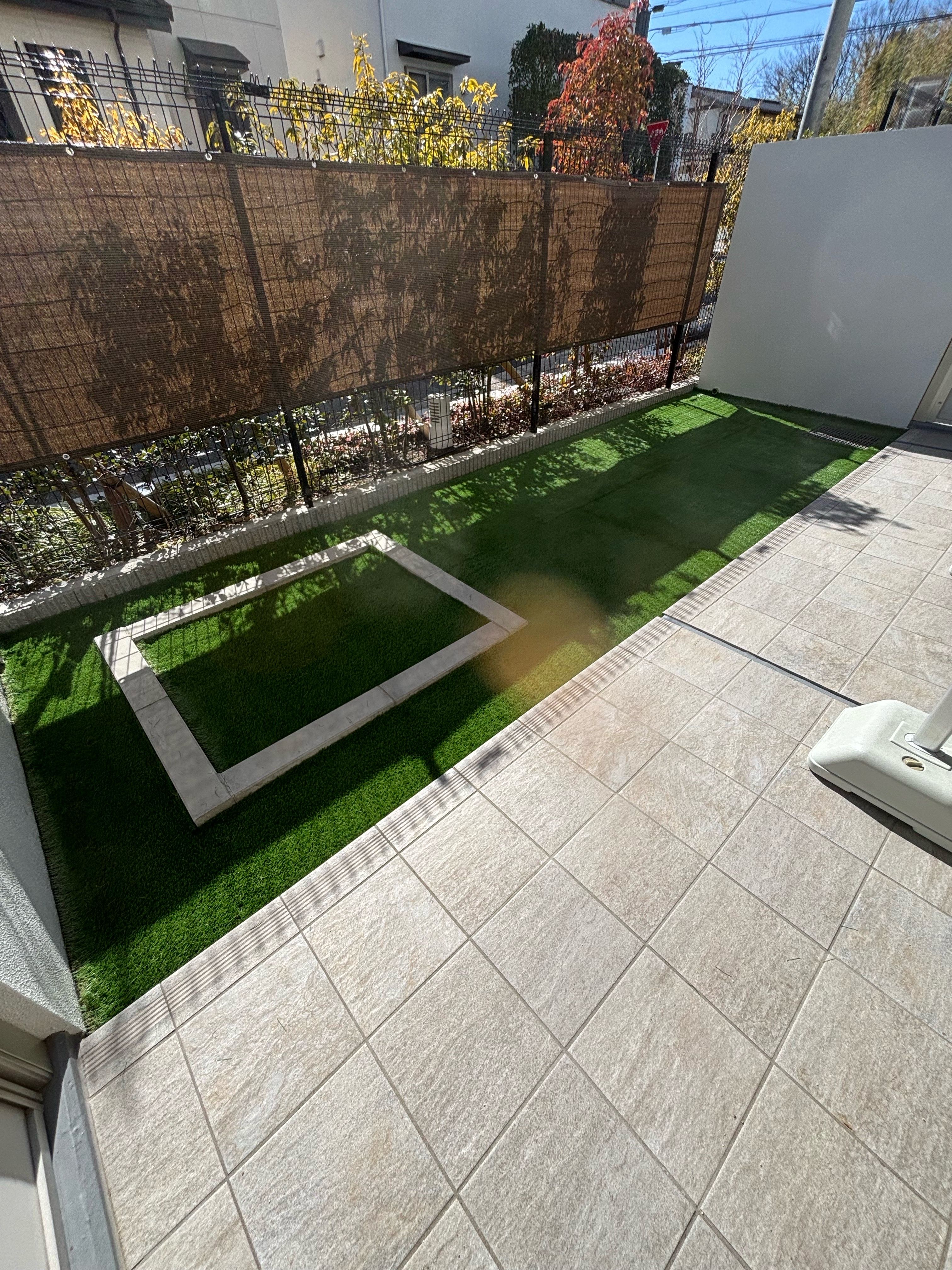 マンションお庭、ナチュラル人工芝施工