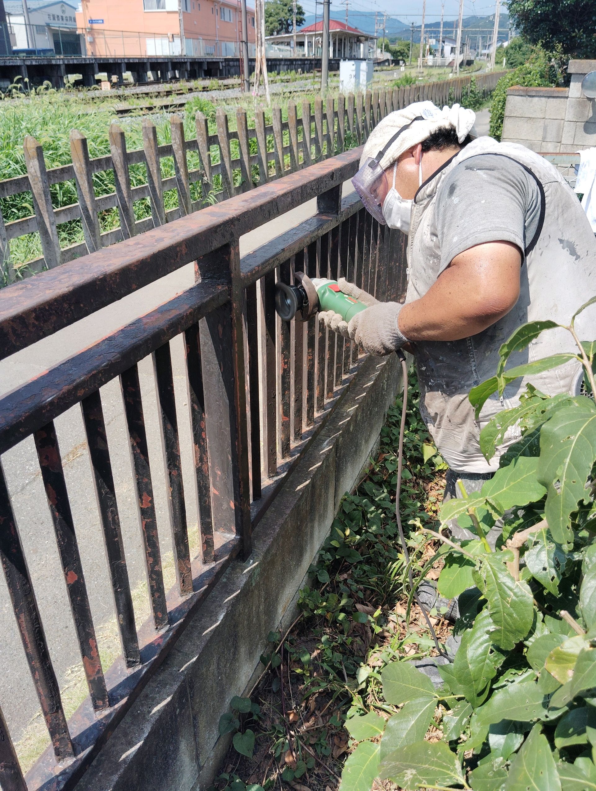 鉄製フェンスの塗装工事で一番大切な下地処理のケレン作業です。
