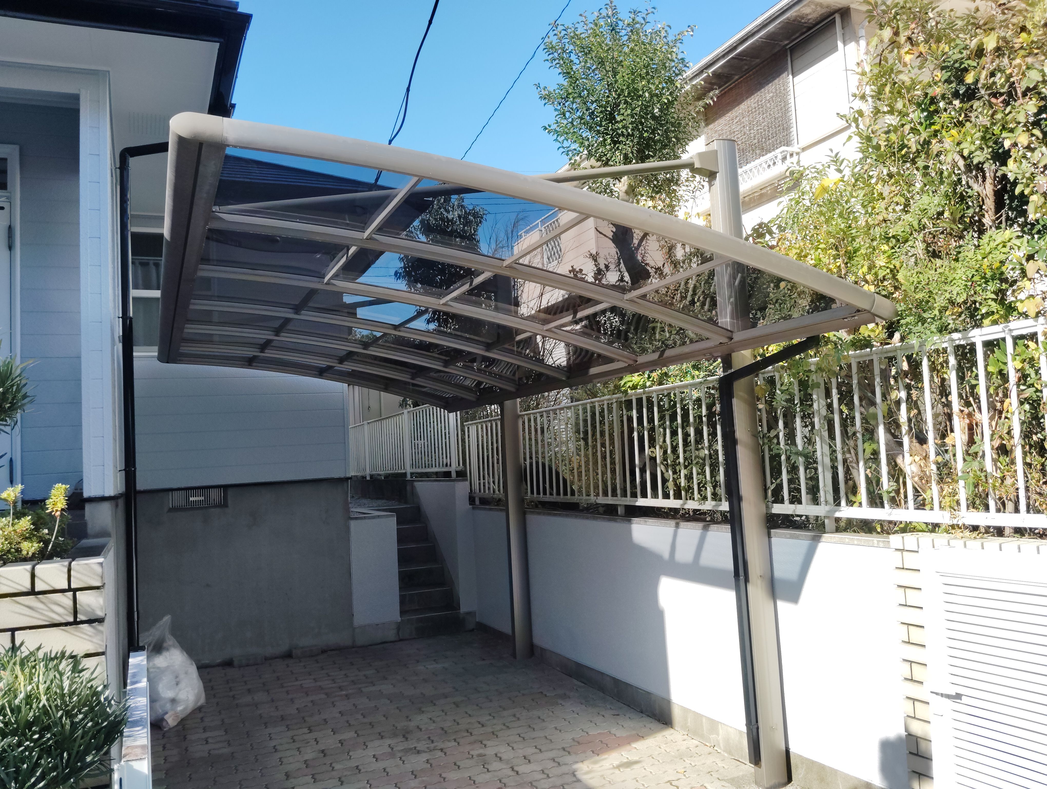 カーポートのポリカーボネート板を交換いたしました。交換する前は白く変色して変形してしまっていた屋根部分が新しくなり とても綺麗になりました。