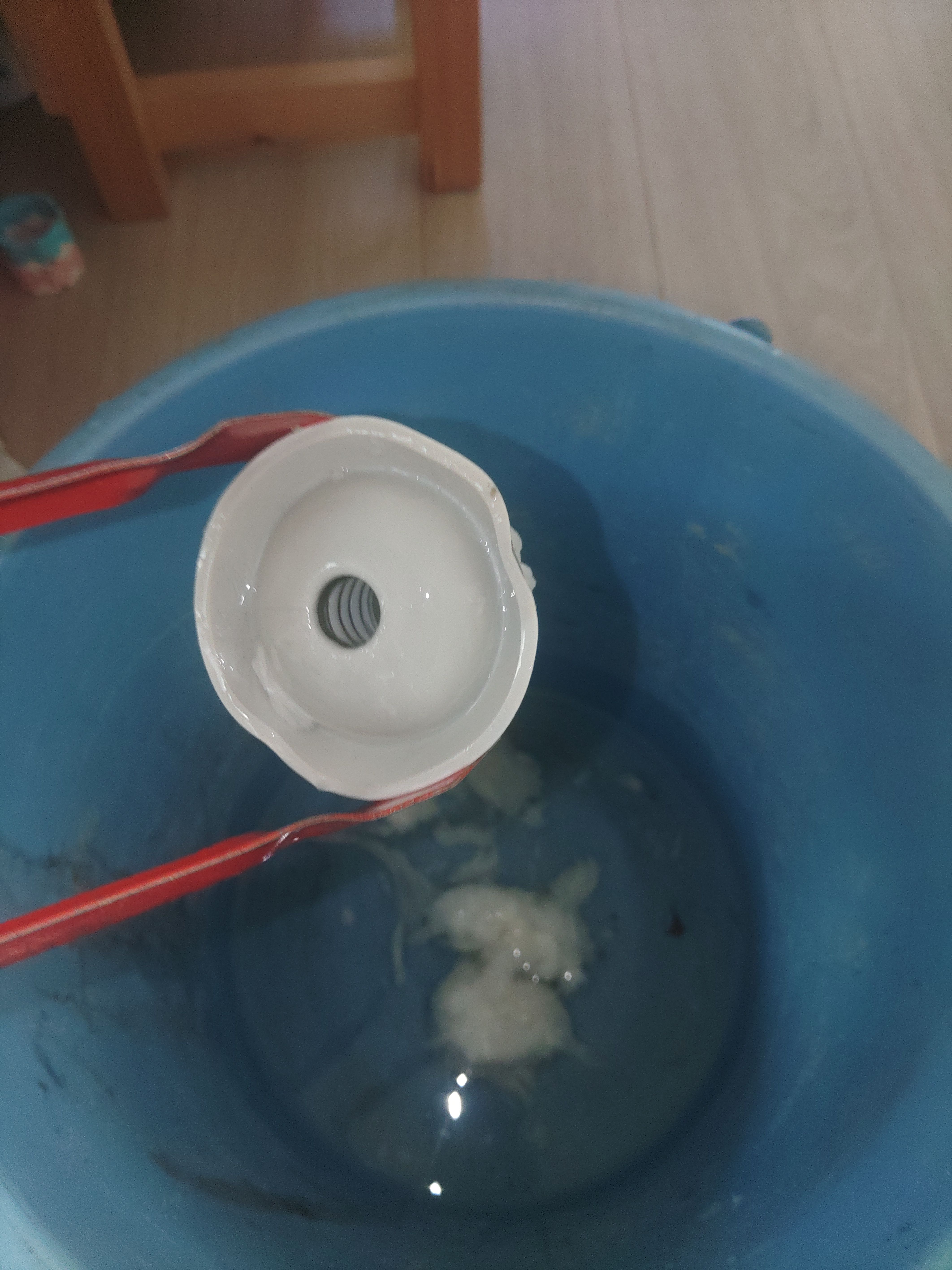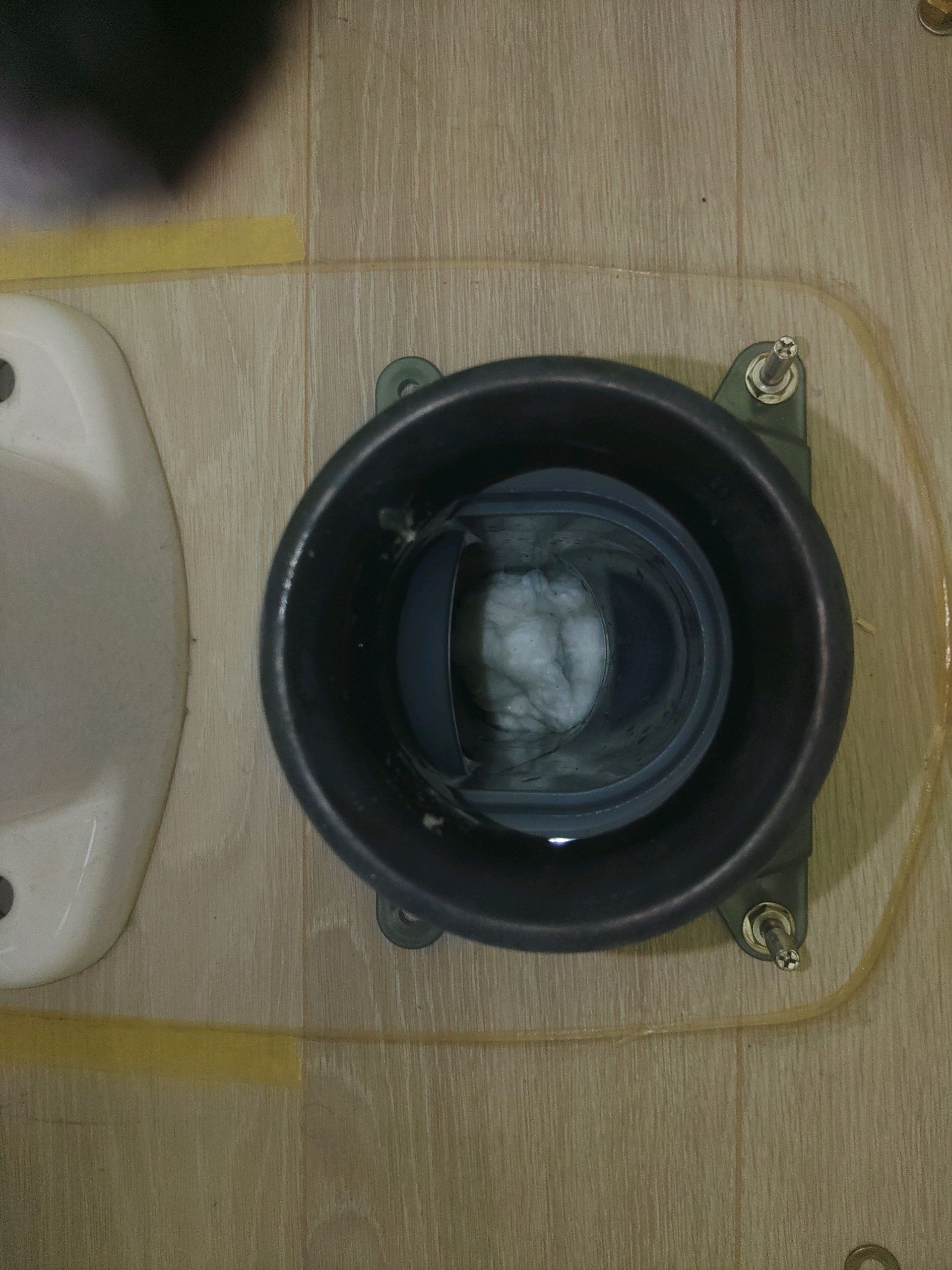 プラスチックを詰まらせたとの事で流せない為、トイレを取り外し異物を取りました