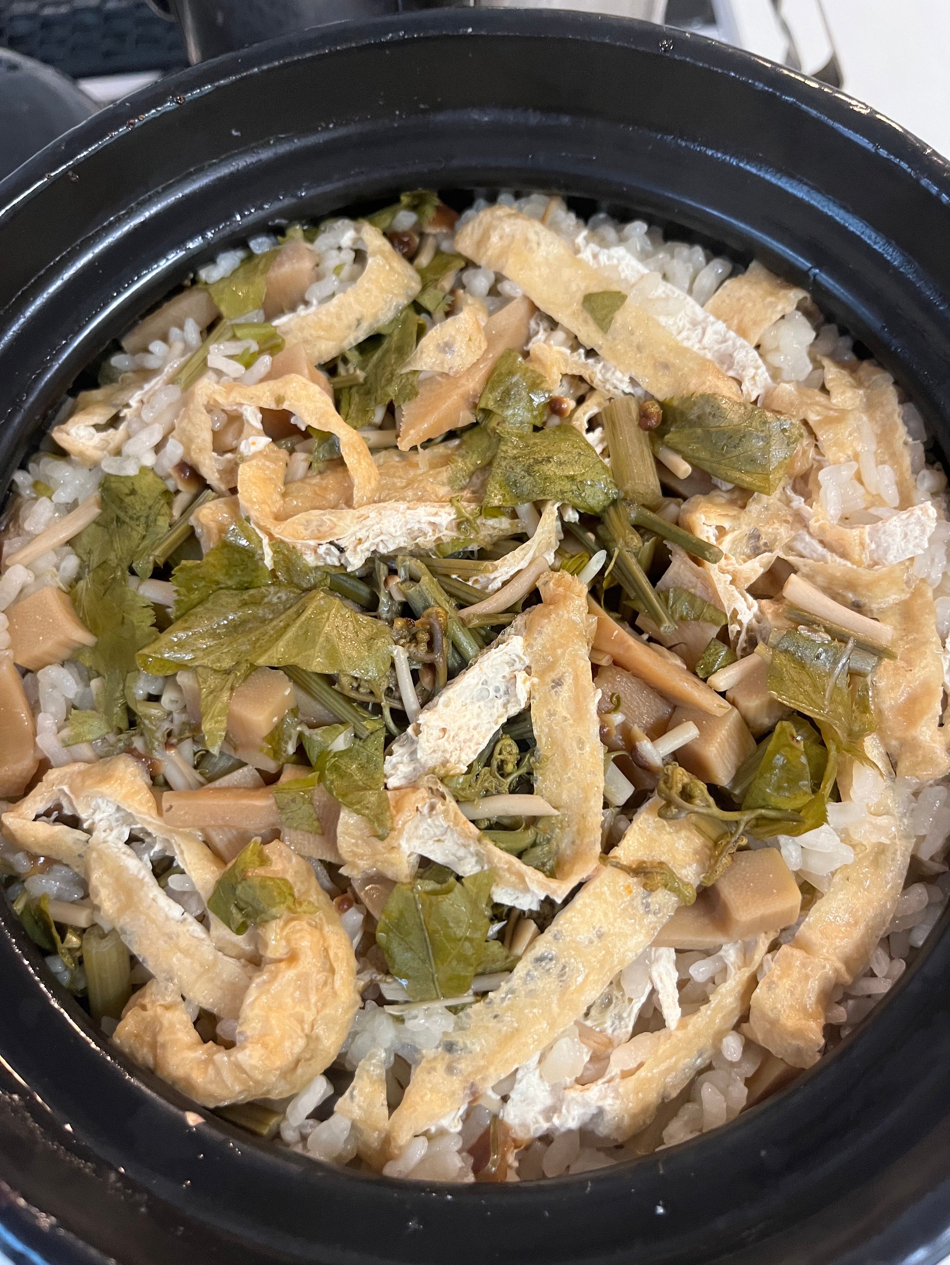 フキに蕨、ゼンマイ、三つ葉を採取して炊き込みご飯を作りました😊