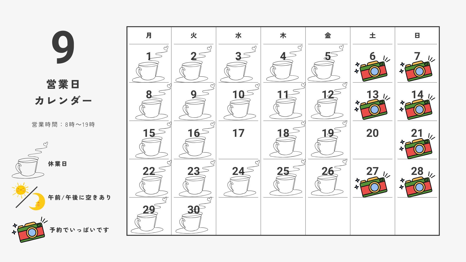 9月については、6日、7日、21日、23日、28日もご予約がお取りできるやもしれません。