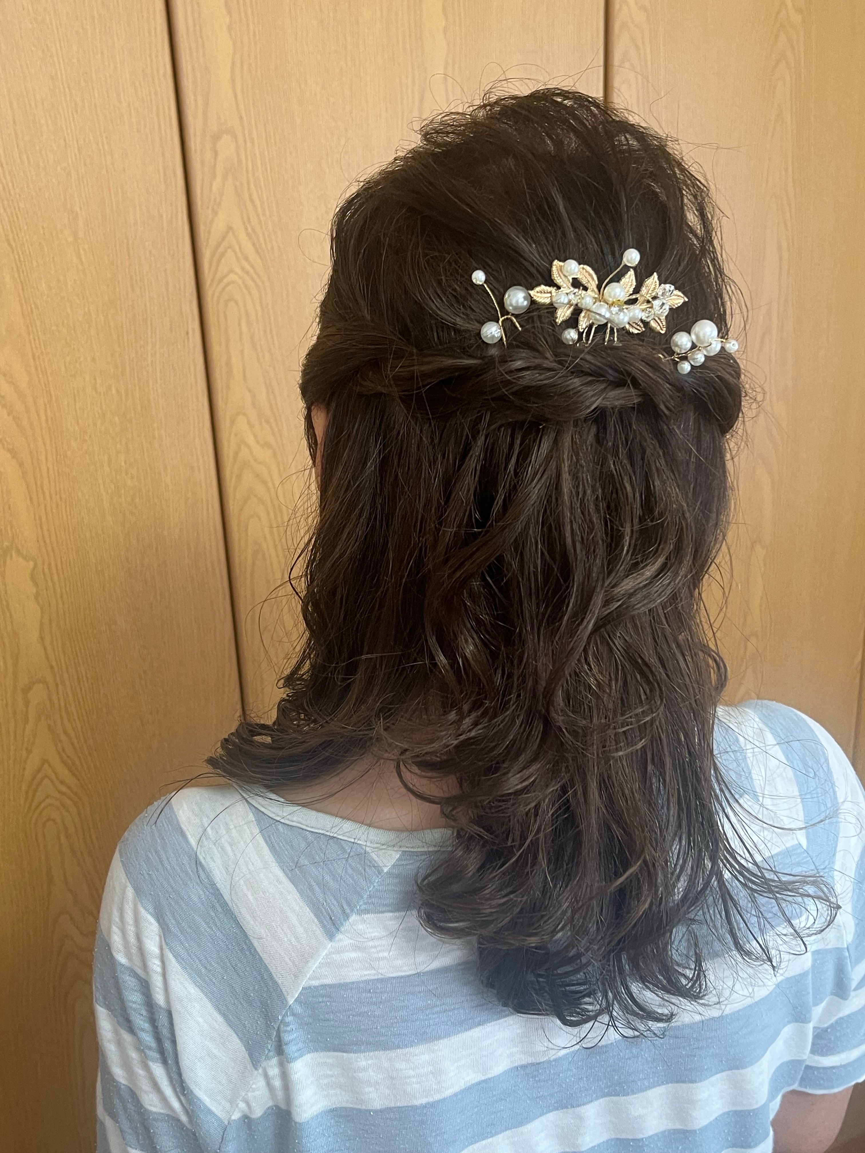 お祖母様は留袖ではなかったのでご希望のハーフアップに。トップのボリュームがないのを気にされていたのでふわっと仕上げました✨️