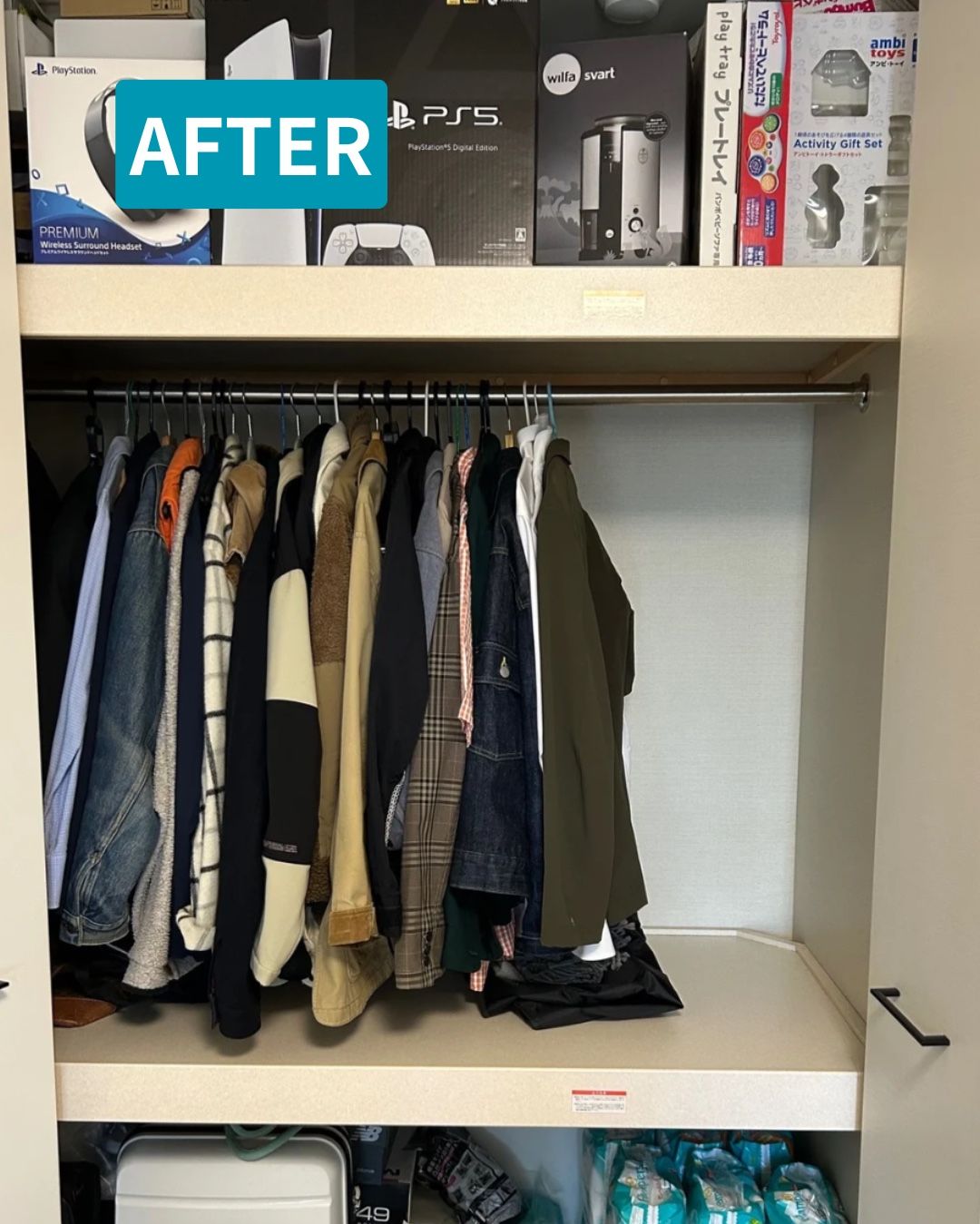 クローゼットの上段を有効活用することで収納力がアップし、