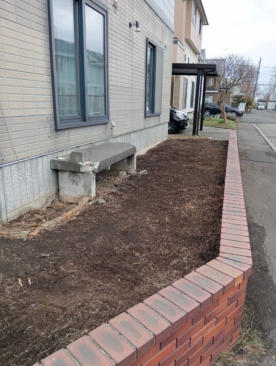 施工前は、雑草や根が広がっていて手入れが大変な状態でしたが、