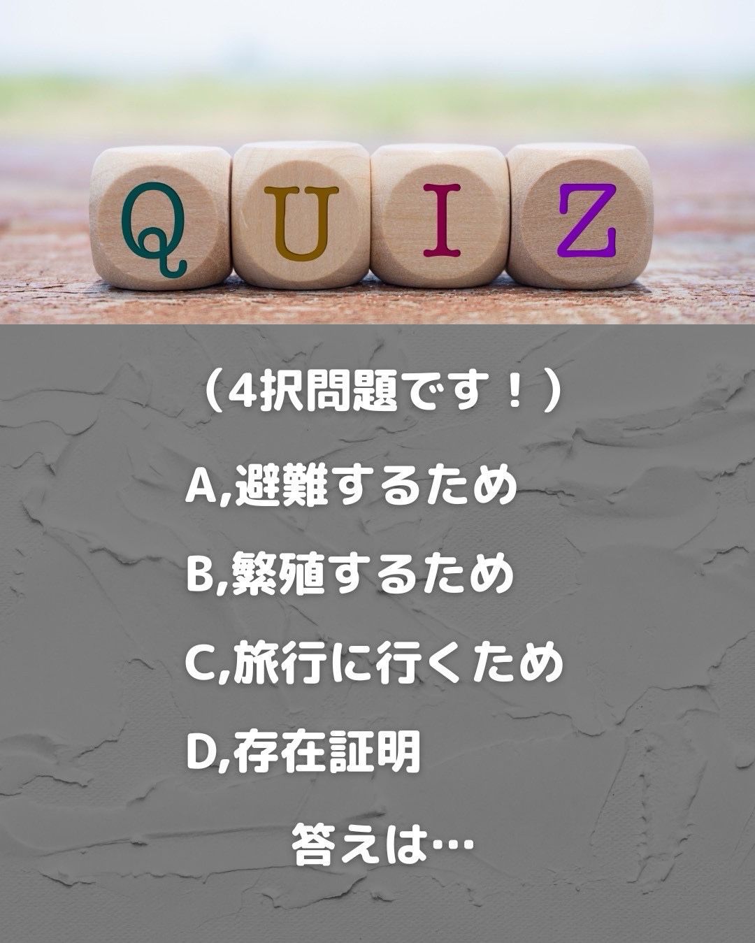 A,避難するため B,繁殖するため C,旅行に行くため D,存在証明