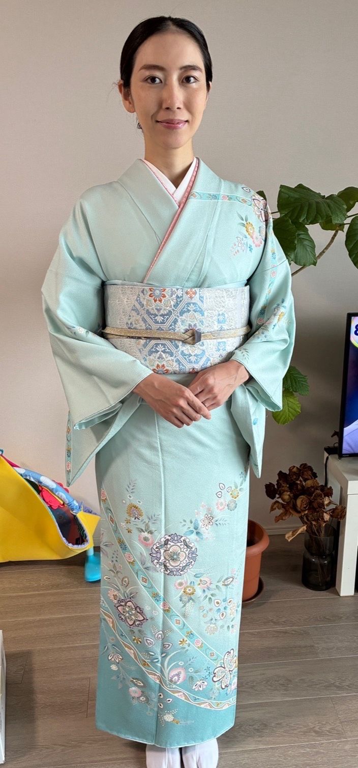 モデルのように美しいママさん、華やかなブルーの訪問着がとてもよくお似合いです💐