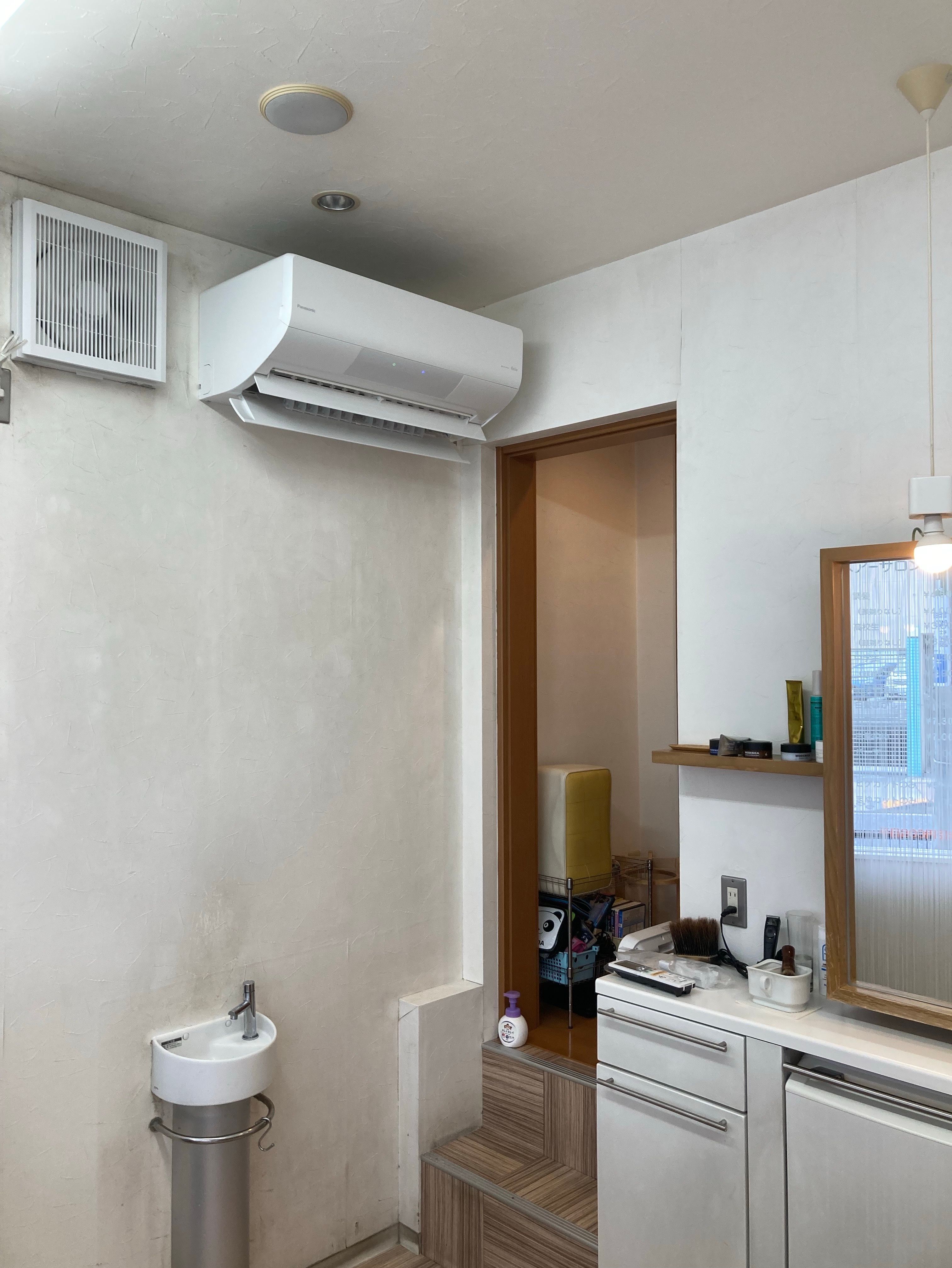 先日、エアコン取付け工事でお伺いしたお客様、店内もシャレオツなヘアーサロン笑