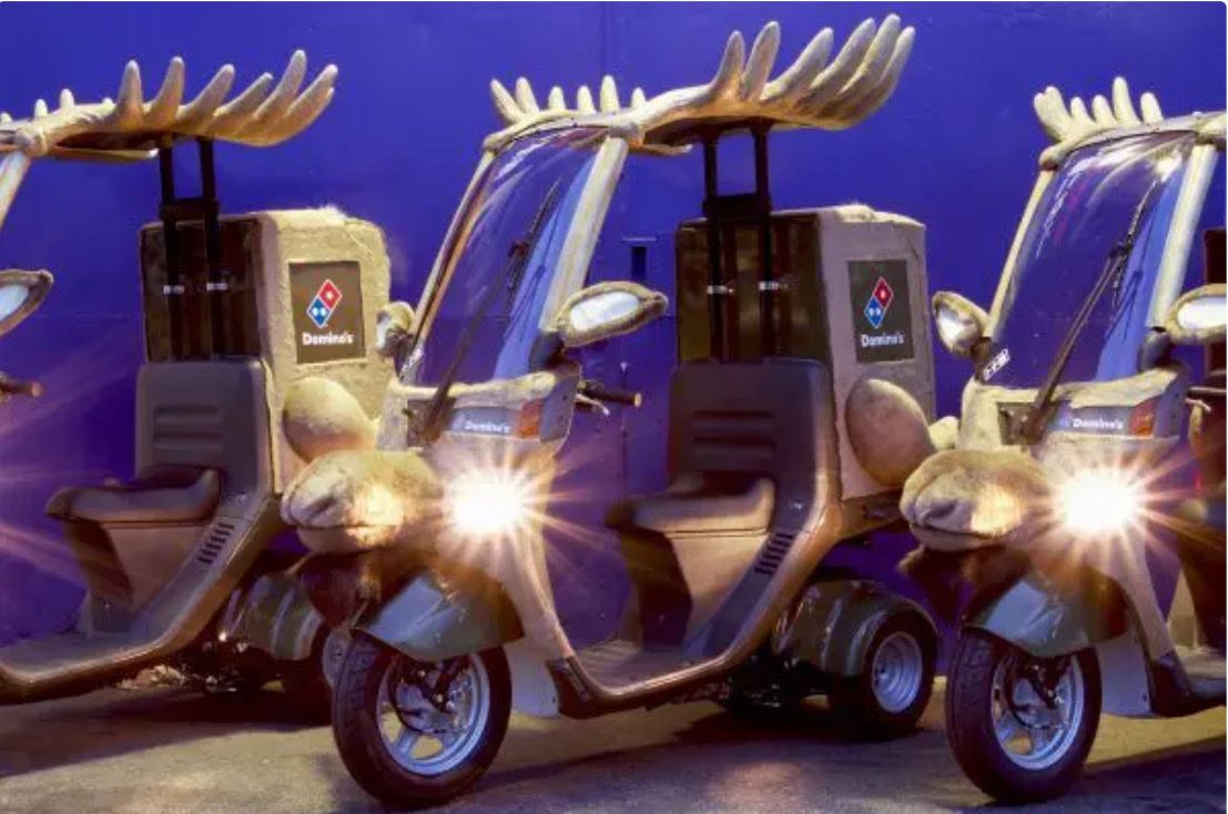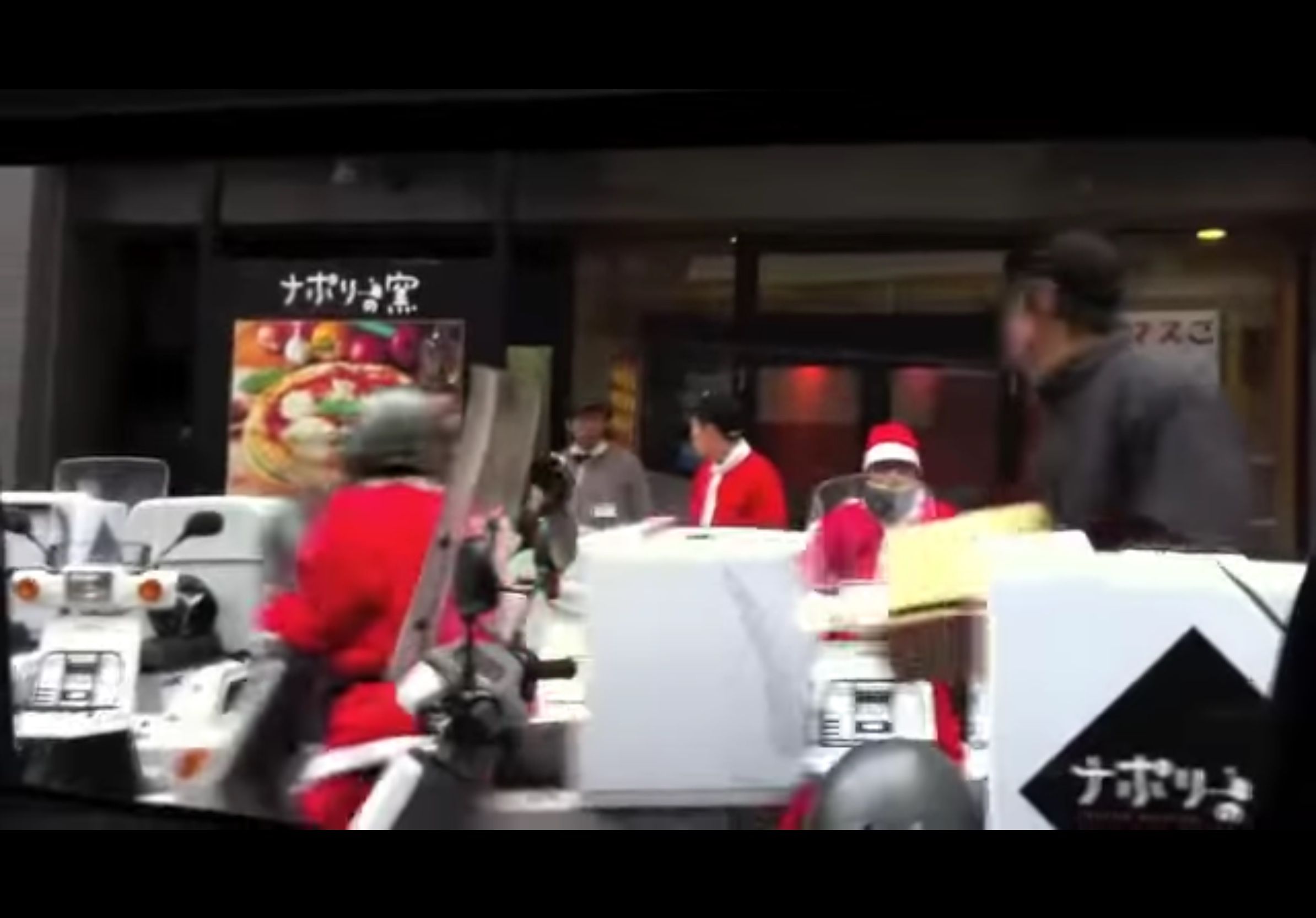 ド○ノピザの配達バイクのお兄さんがサンタクロースの格好で目の前に急に飛び出してきました。