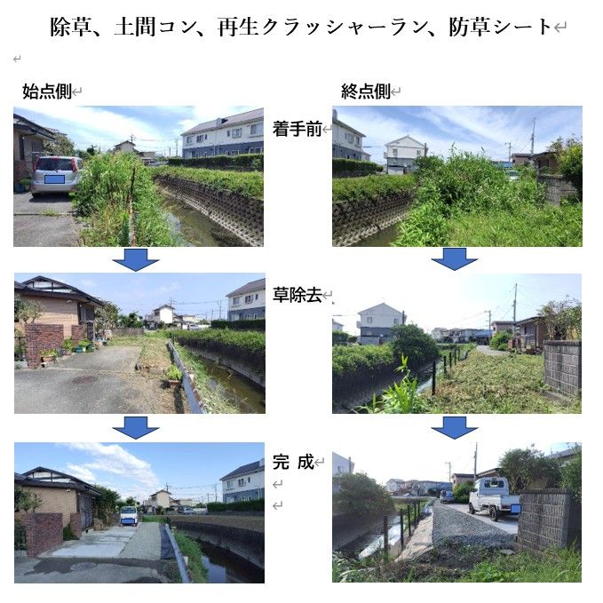 普段忙しい施主様のご要望に応じて、除草、土間コン、再生クラッシャーラン、防草シートの施工を行ない駐車場が広く使えるようになりました。メンテナンスが楽になったと喜んでおられました。