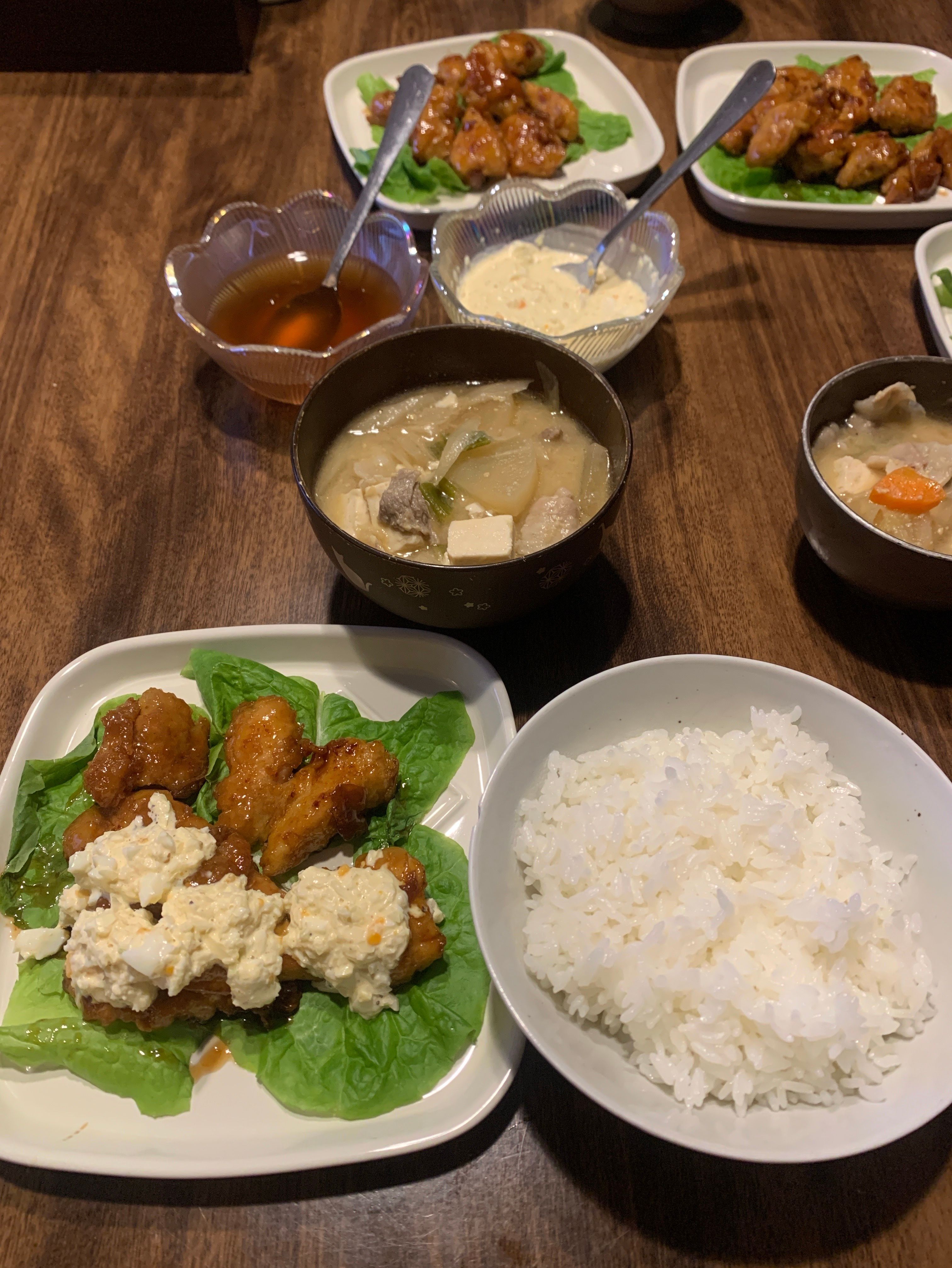 もも肉とむね肉の2種類を使って、タレもタルタルと甘酢の2種類を用意😋