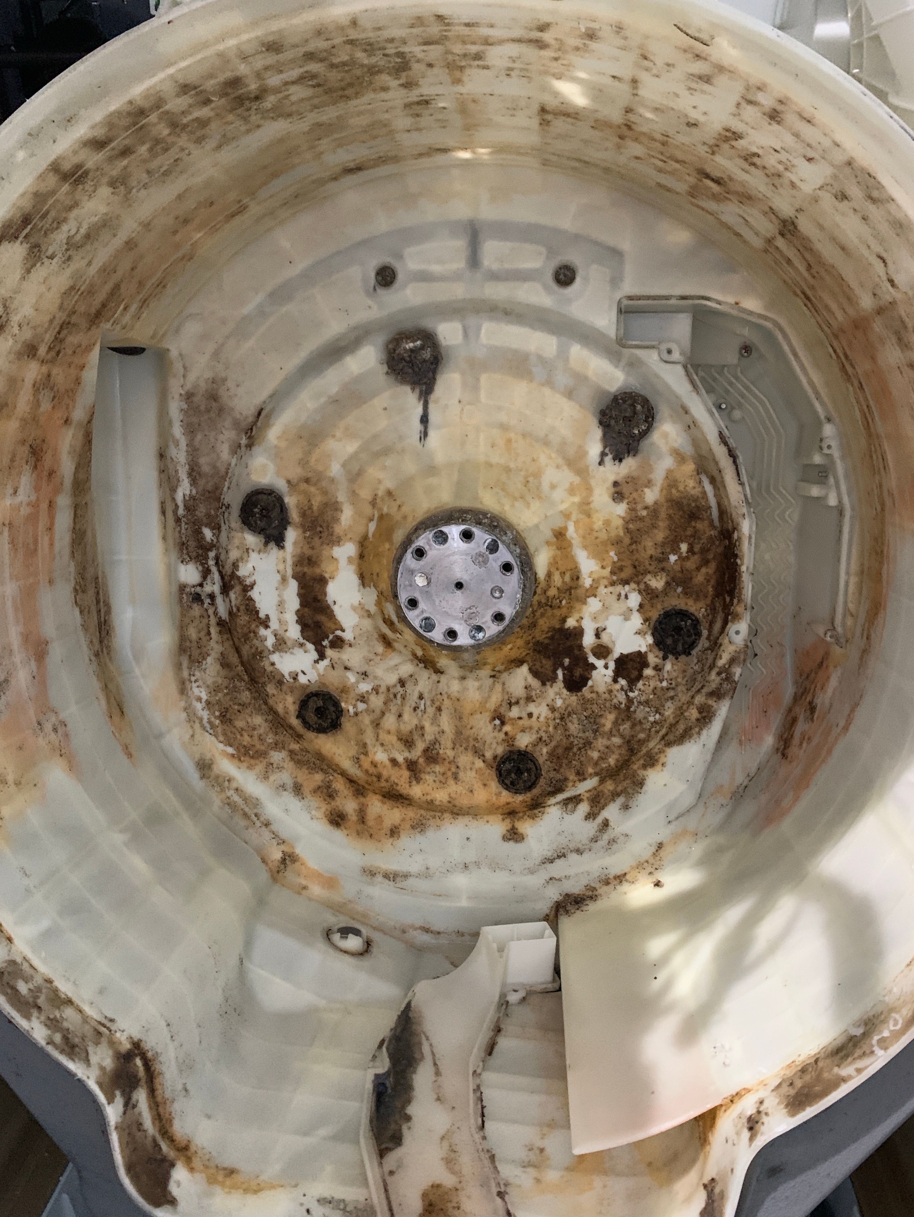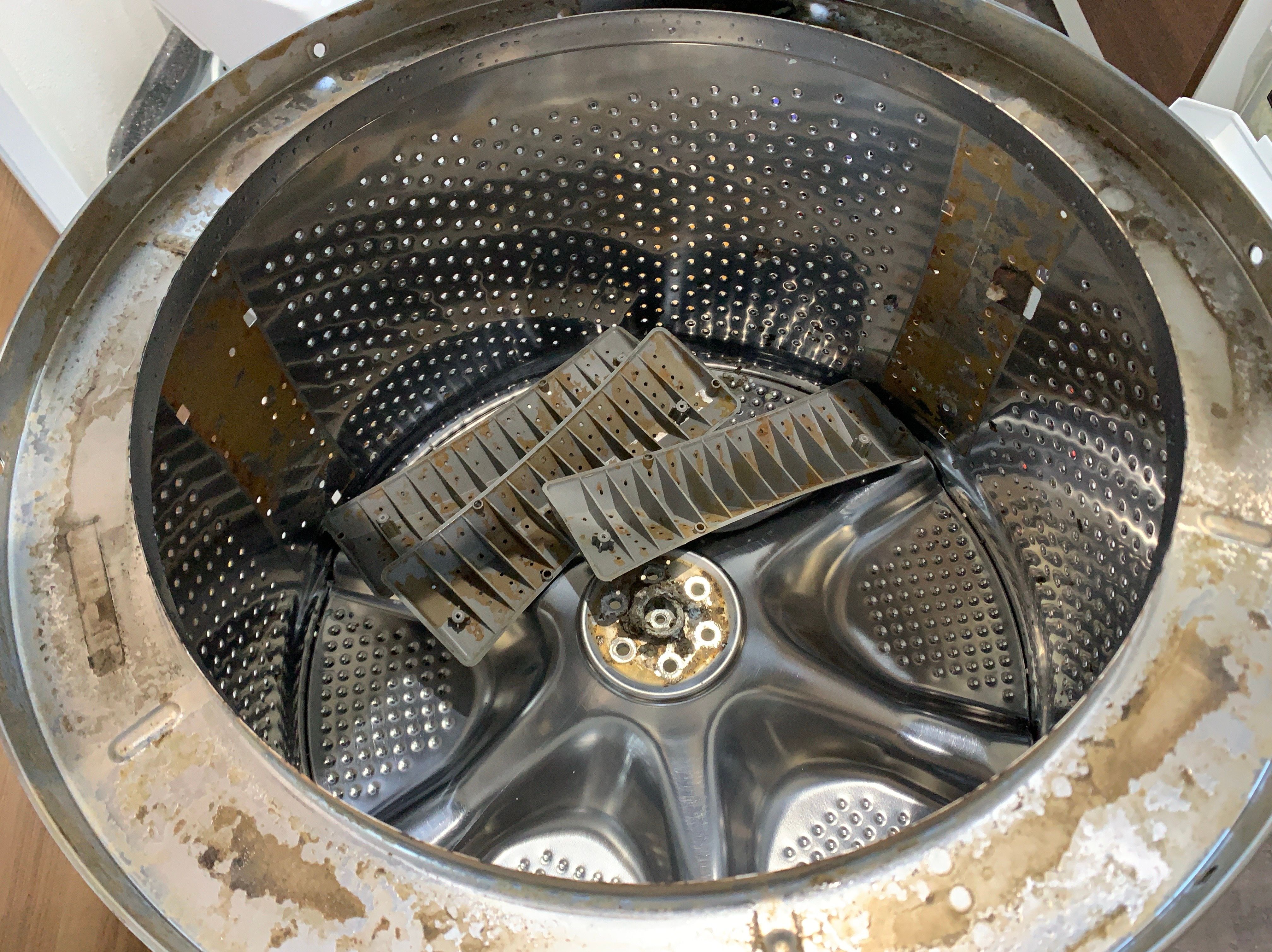 実は「洗濯槽を外さずに洗う業者」もいますが、それだと内部パーツや裏側の汚れまでは落とせません💦