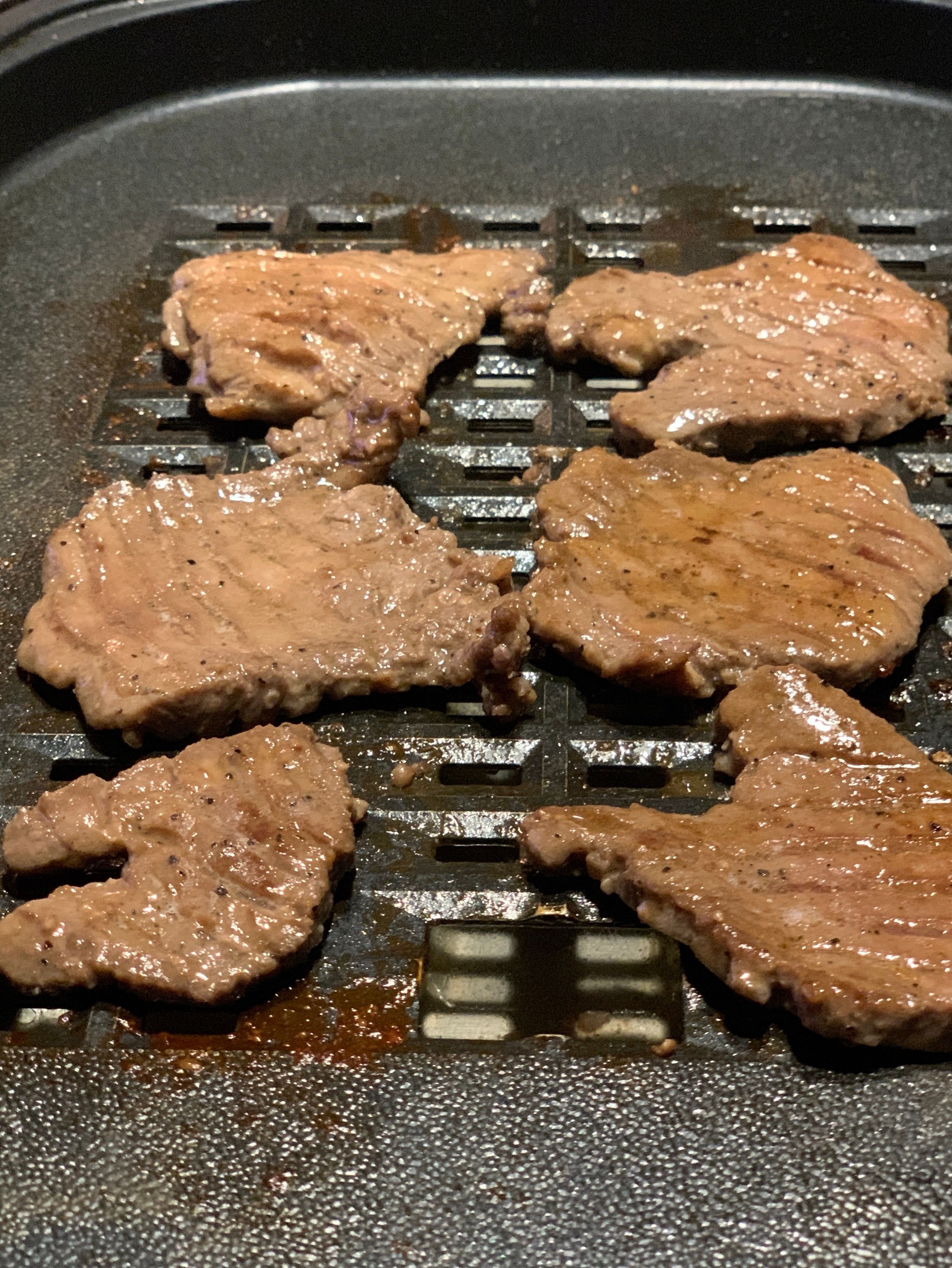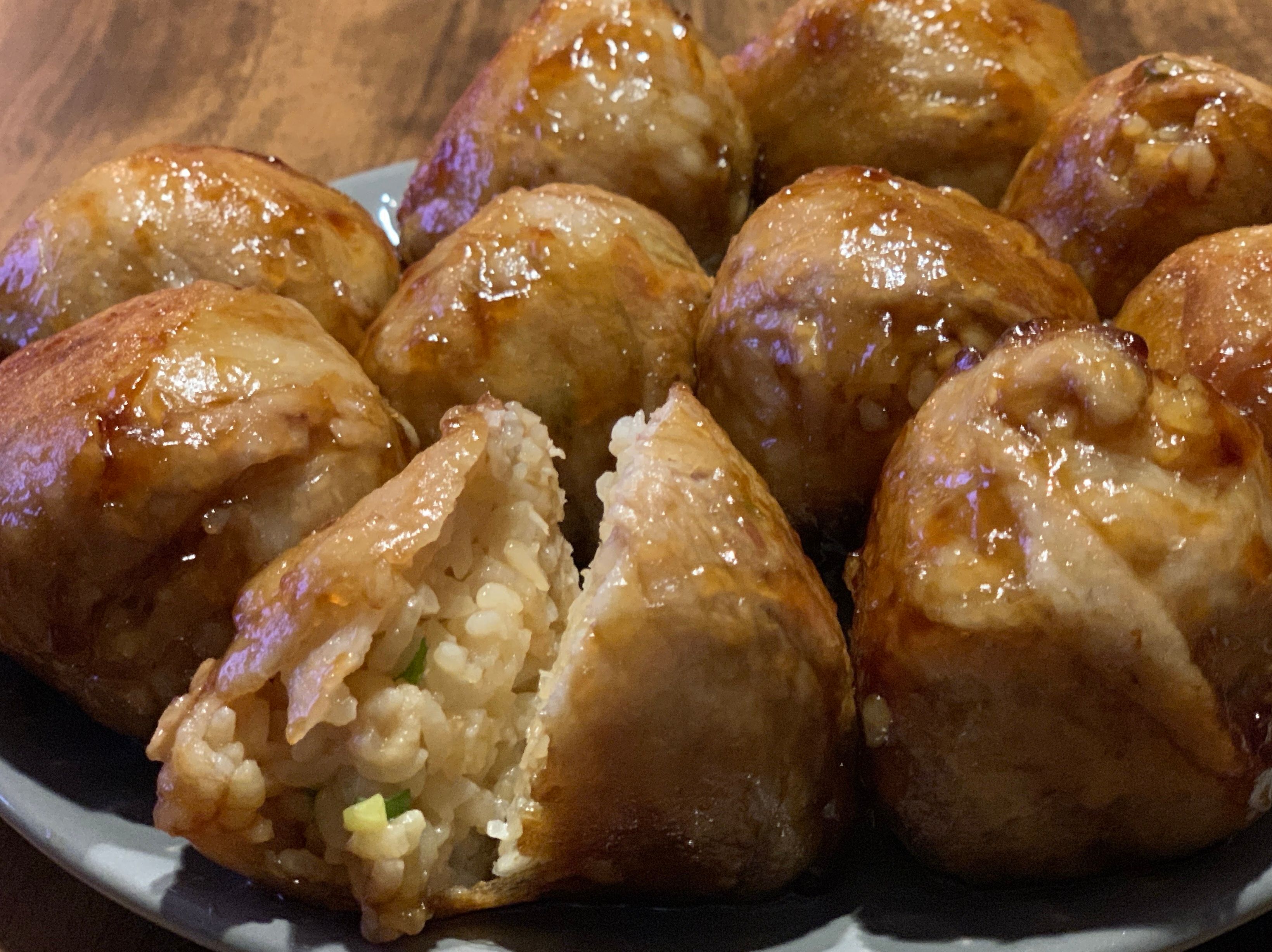 今日はお昼で仕事が終わったので、ふるさと納税の牛タンを焼いて、子どもと一緒に肉巻きおにぎりを作りました。