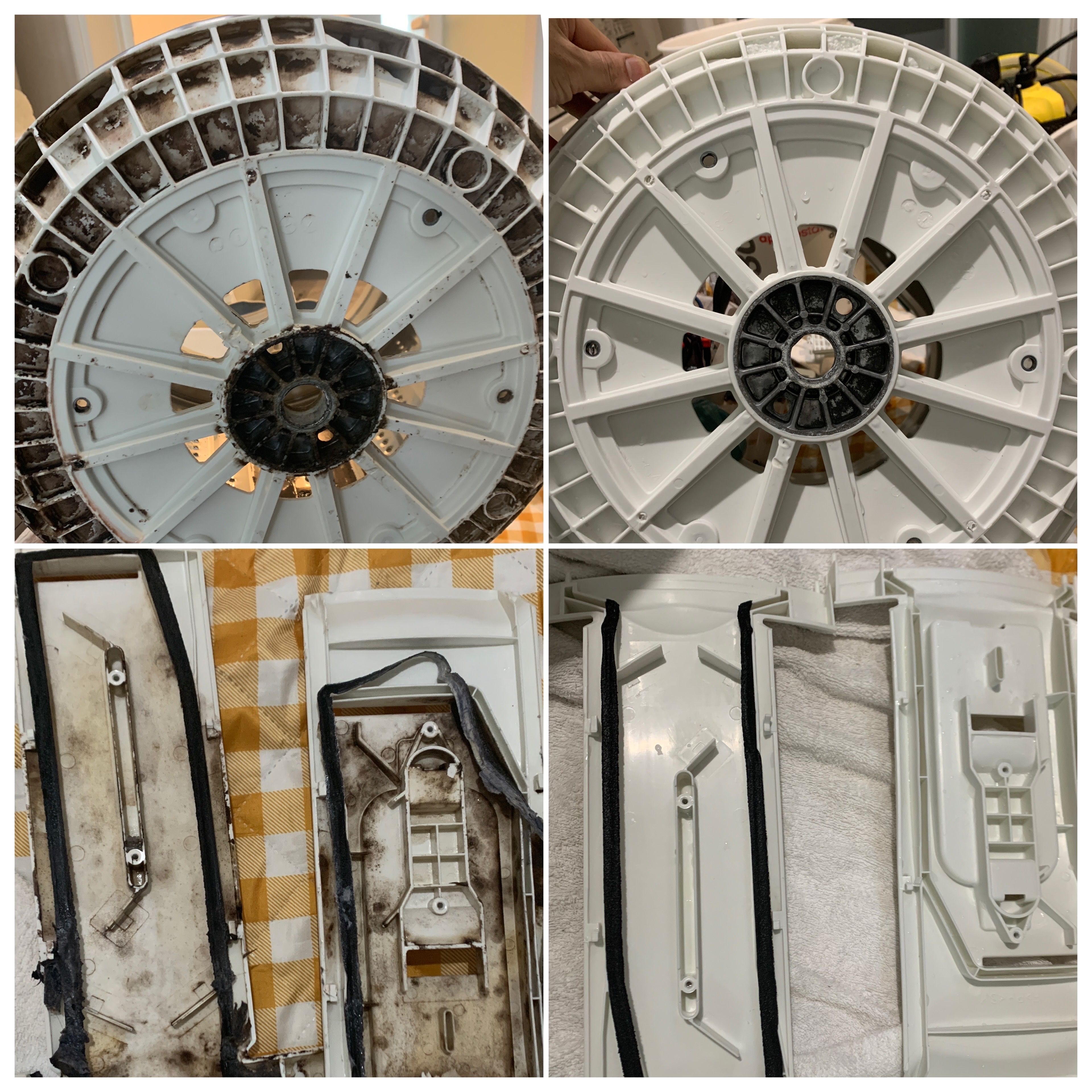 定期的に洗濯槽クリーナーを使っていたので「そんなに汚れていないはず」と思われていたのですが、分解してみるとカビがびっしり…。驚かれていました💦